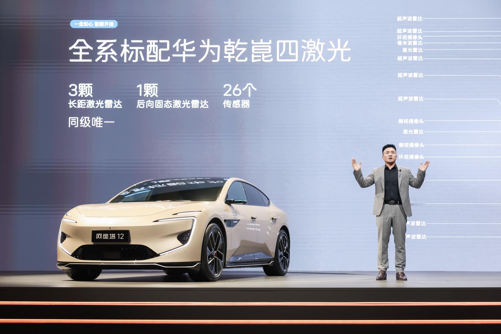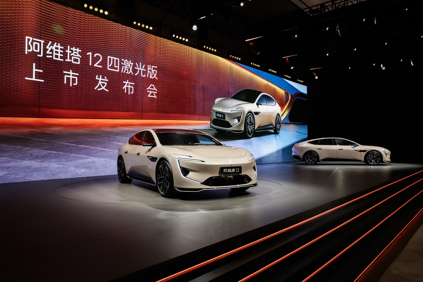 硬件和软件一样,都需要冗余,所以阿维塔12堆的太猛了,目前最强四激光雷达的解决方案,其中3颗大激光雷达负责前向和两侧,还有一颗后向的高精度固态激光雷达,可以感知负向距离的那种,共同组合成华为乾崑ADS 4,大家最喜欢的智驾小蓝灯自然也是配上了。阿维塔12四激光版上市阿维塔12十二项同级独享