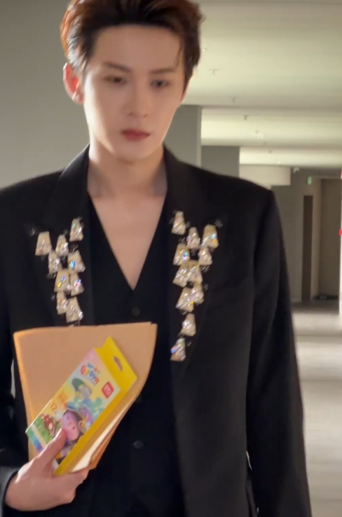 檀健次ELLE背头,檀健次水晶吊坠西装look,咱就说这个檀健次也太帅气了吧,就这个穿西装运动的大哥酷啊~