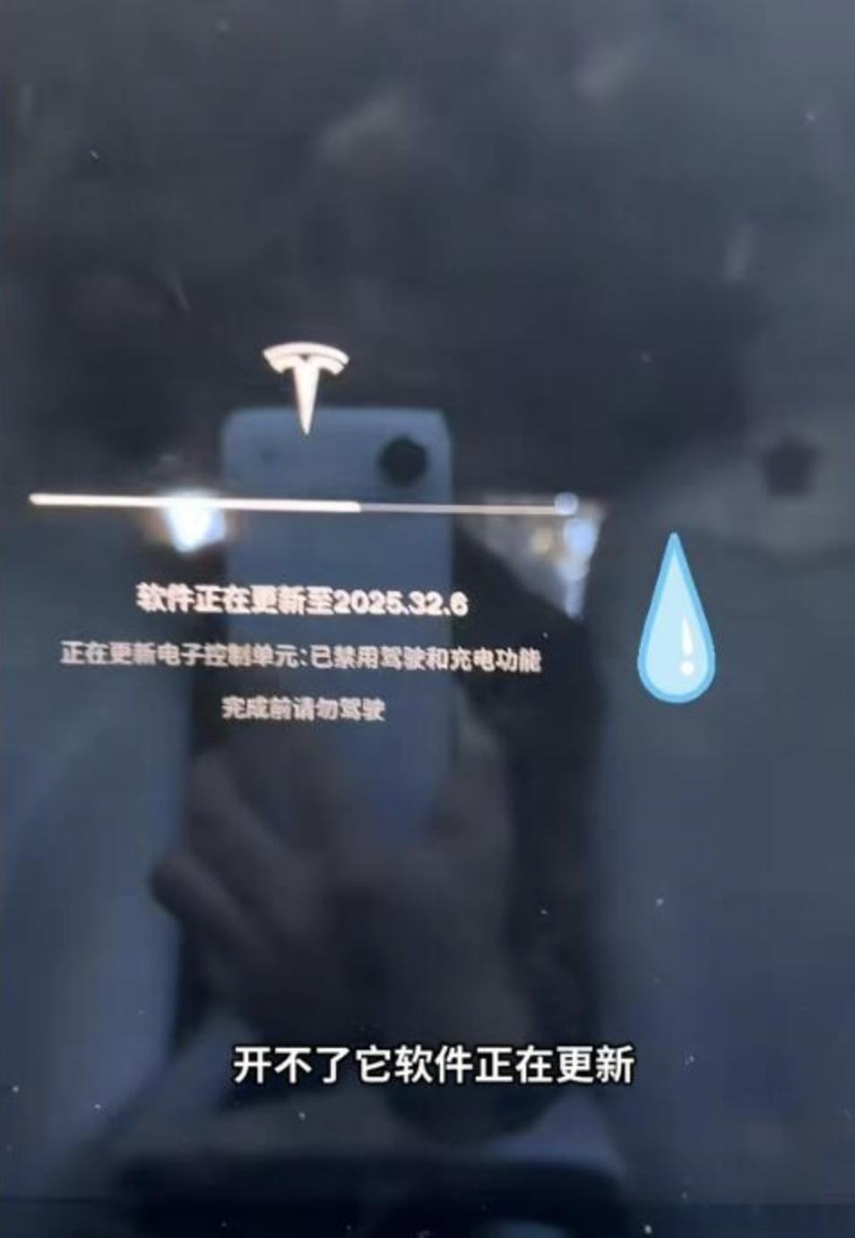 视频显示,特斯拉的车门完全无法开启,但后备箱依然能正常打开。杨天真最终只能通过后备箱钻进车里,而车机界面上则显示“系统正在升级中”。