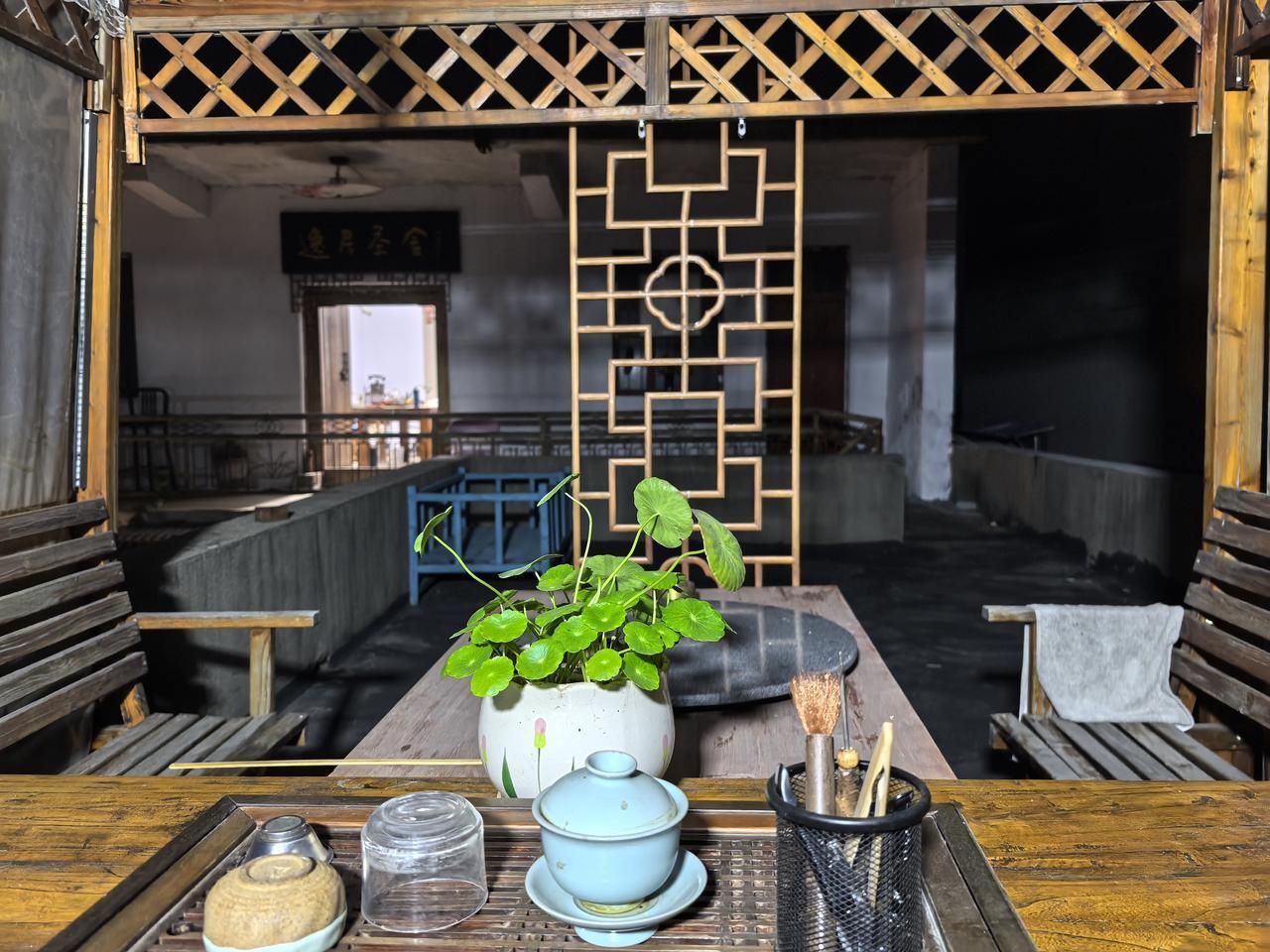 一方小院,满院秋色。 花落果熟,秋染红叶。 亭台风凉,沸茶暖身。 弯月高挂,空静禅心!
