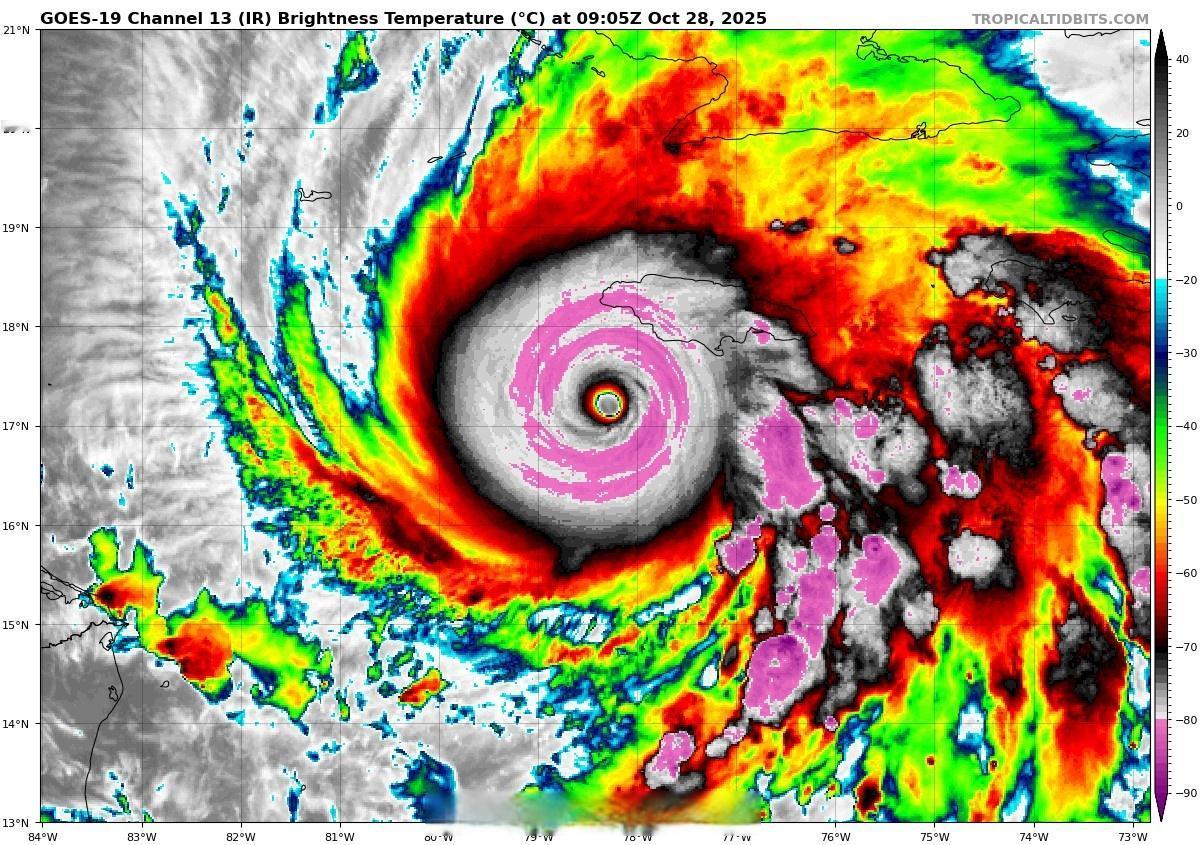 【梅利莎将在牙买加白宫附近登陆】五级飓风梅利莎已经开始加速,它即将在北京时间10月28日深夜或29日凌晨在牙买加白宫(white house)附近登陆。预计登陆时,梅利莎中心气压902百帕左右,中心附近最大风力150kt左右,将是1851年以来牙买加最强飓风,也将是西半球最强登陆飓风之一。牙买加西部有可能会被飓风夷为平地,东部将有特大暴雨,有可能出现巨灾,请当地华人朋友注意避险。