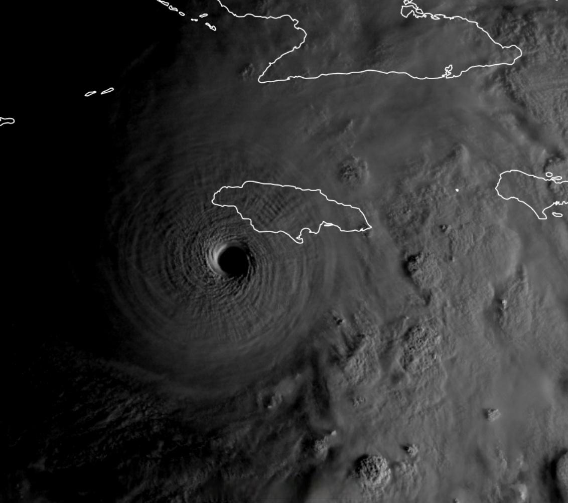 这就是飓风眼的压迫感!今年的新晋风王梅利莎,即将以巅峰强度在牙买加登陆,预计登陆时中心气压900百帕左右,中心附近最大风力17级以上