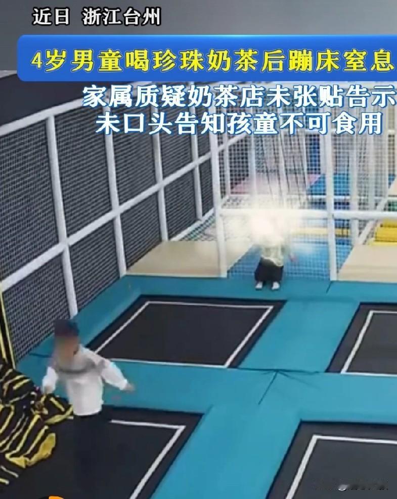听闻浙江台州小男孩边喝珍珠奶茶边玩蹦床被噎死,十分同情这位家长,又十分气愤家长的无知。喝着奶茶玩蹦床床,隐患太大了吧!即使没有珍珠噎住,那吸管戳到喉咙也会致命的。这种事情发生的太多了。过后家长不反思自己监护失职,反而怪到奶茶店和游乐园,她们认为奶茶店珍珠尺寸过大。又指责游乐场未制止带食物入场,救助不及时; 这是不是失了心疯了。 该追问的应该是:什么样的家长会给正在玩蹦床的三岁孩子喝珍珠奶茶? 为了大家引以为戒,看好自己的孩子,给大家说一件我们隔壁村里的事。隔壁村有户人家,农忙季节加上孩子多无人看管,又是夏天,他最小的儿子光着屁股就在院子里睡着了,这时他家的一头老母猪晃晃悠悠就跑出来了,可巧的是一嘴将孩子的鸡鸡给咬掉了……到现在那个男的孤苦伶仃一个人…… 所以,孩子小的时候千万要看护好了,尤其是6岁以下儿童。