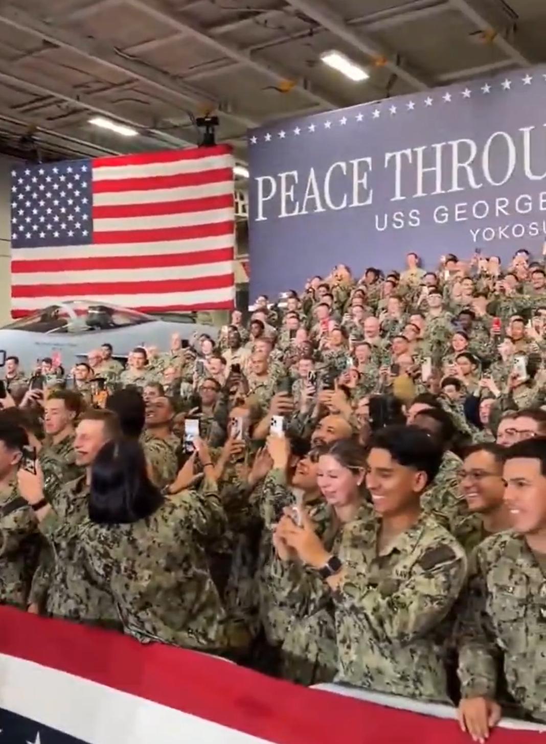 美军华盛顿航母上的士兵,根本不像是领不到军饷的样子。 川普在台上跳舞,底下的美军士兵,都兴高采烈的拿起手机拍视频。如果是没有领到军饷,哪还会有这么大的心情拍视频呢。 另外,仔细看台下的士兵,有色人种的比例很高。 以前就听说,在美国当兵,除了可以免费读大学,还可以拿到美国的绿卡,不知道是不是真的。