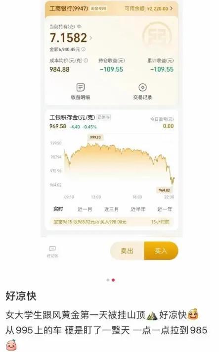 黄金闪崩,大学生生活费亏光,投资群炸锅!金价的跌落,是危机还是机遇? 谁能想到,曾经暴涨的黄金,说崩就崩!就在今天,现货黄金跌破3900美元/盎司,较上周高点跌超10%。国内金价紧随其后,周大福,六福珠宝等品牌金饰单克价跌超20元,纷纷跌破1200元关口。 一夜亏光生活费成了社交平台的热搜。不少大学生跟风入场,本想赚点零花钱,结果反被割韭菜。有学生下跌时补仓想摊薄成本,却亏得更惨。盲目跟风,最终成了市场波动的牺牲品。 金价的起伏,永远是情绪与逻辑的博弈。高波动下切忌追涨杀跌!对于年轻人,更需理性控制仓位,设置止损线。对于普通人,别总想着一夜暴富。