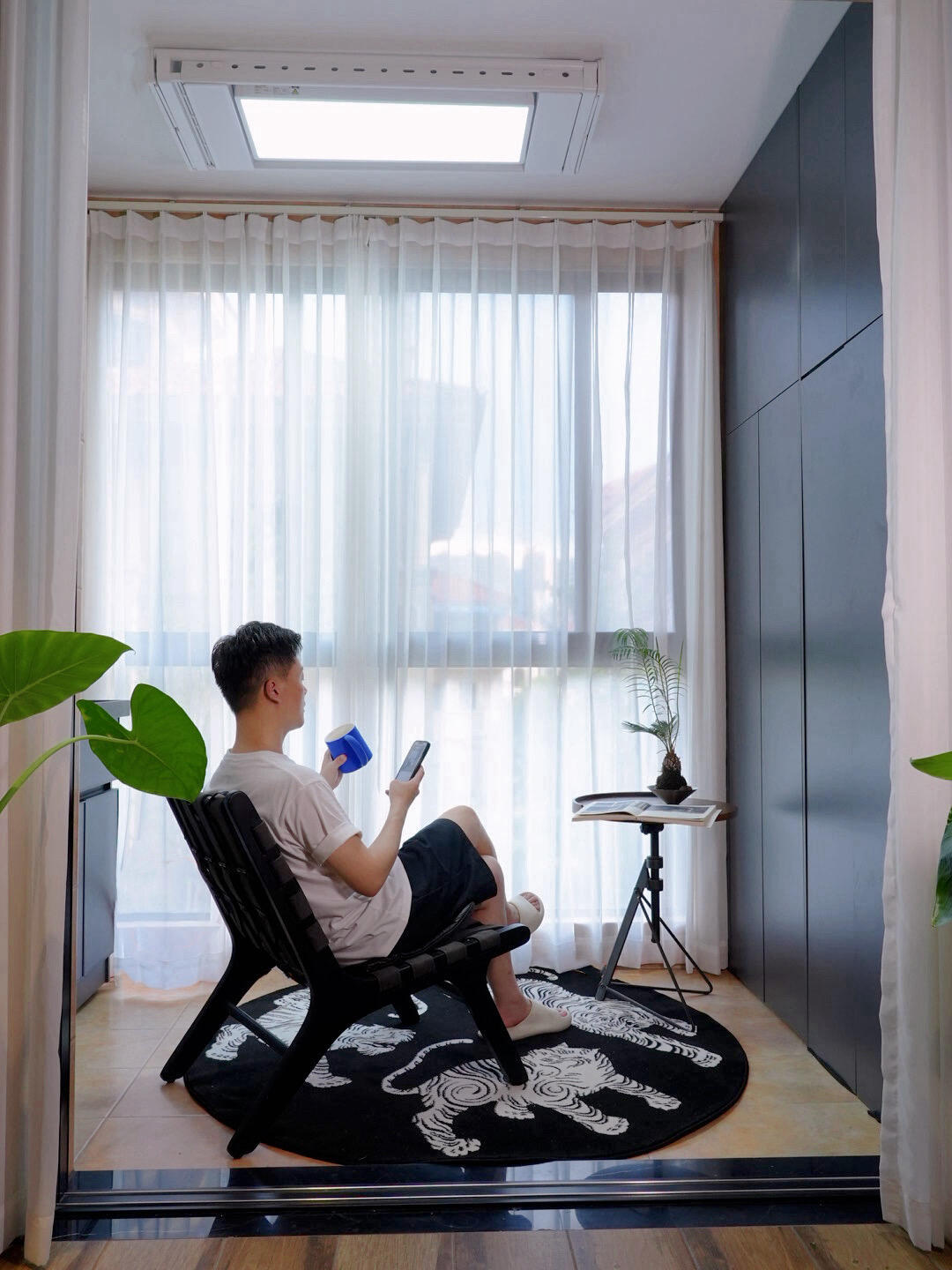 这个生活阳台比较小只有5平,办公累了也可以搬个小边桌在阳台上晒晒太阳,也挺舒服🍀