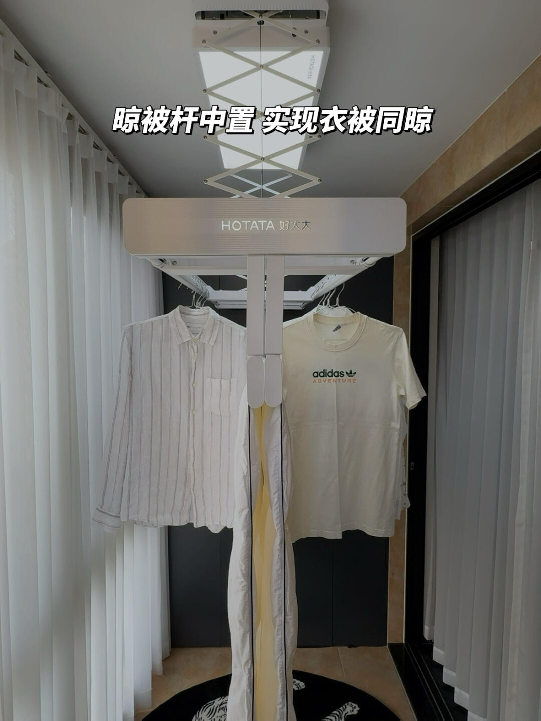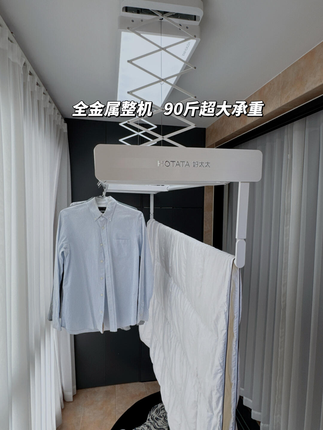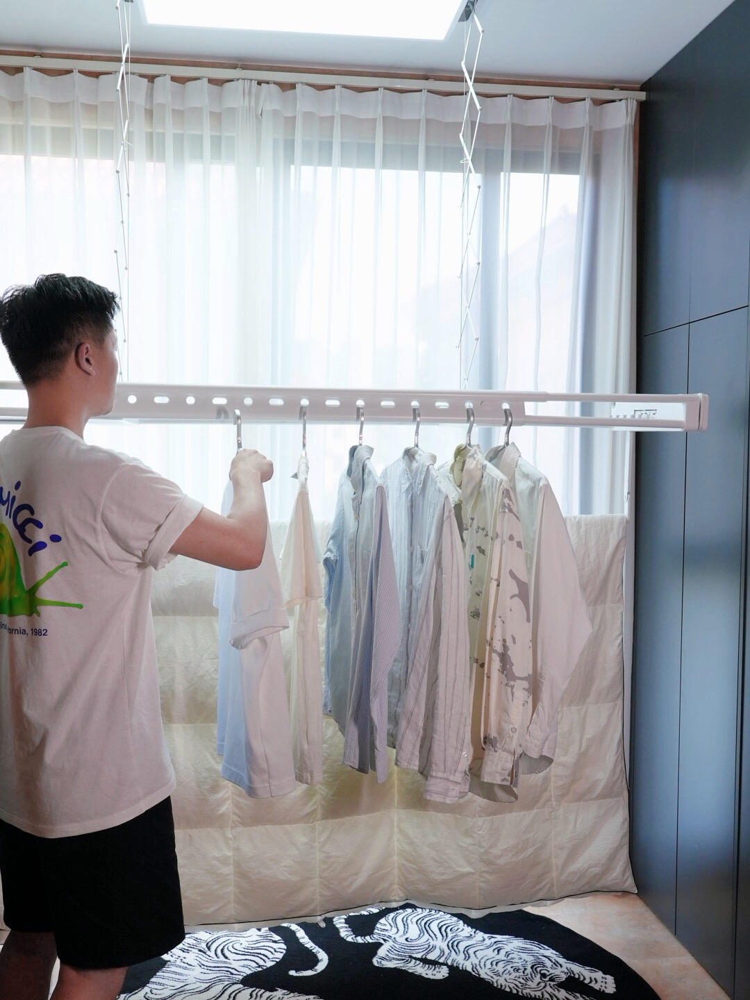 不影响层高开窗,升上去收起来很隐形,外观简洁,但需要晾晒时,功能也非常强大