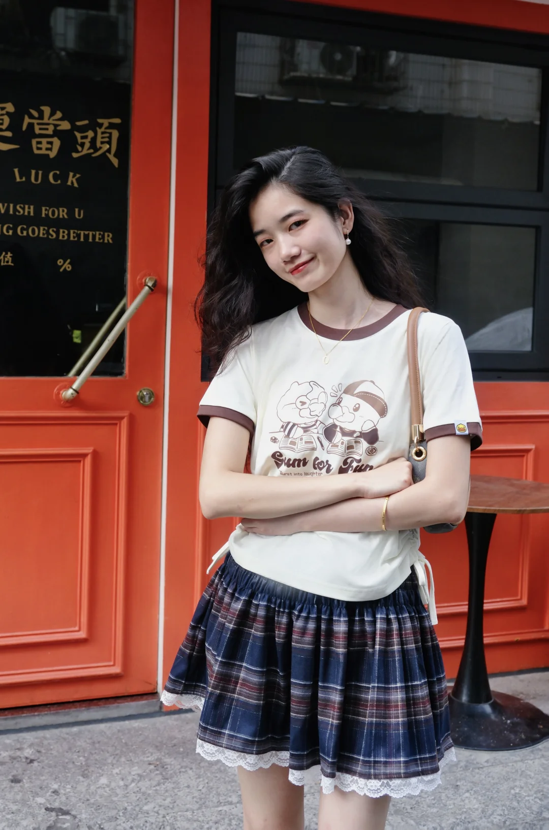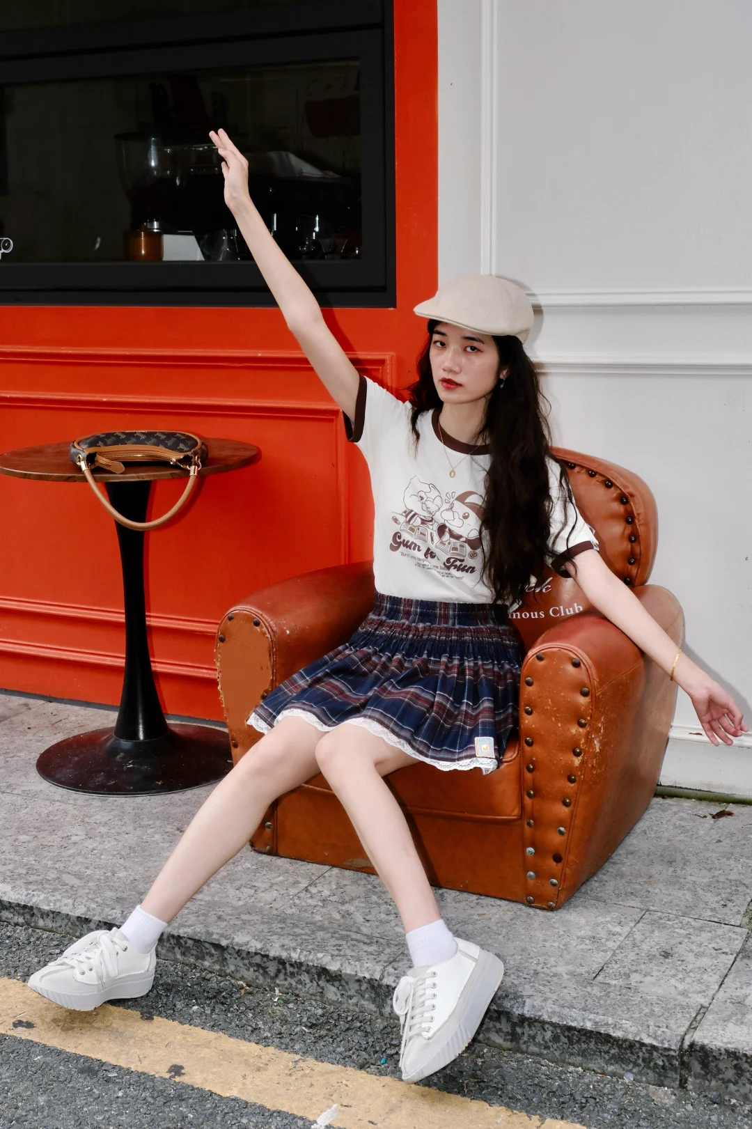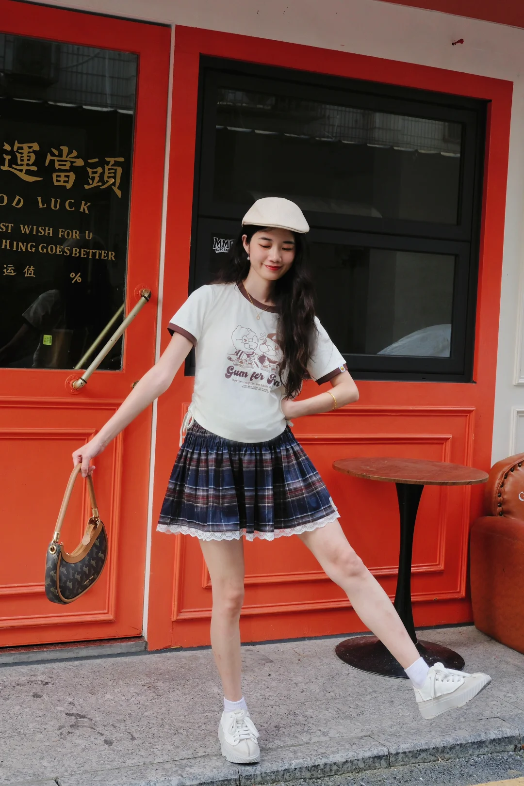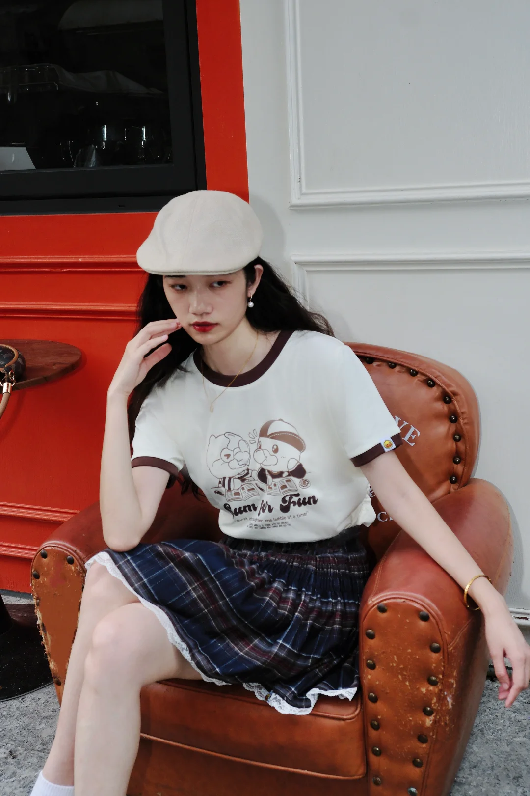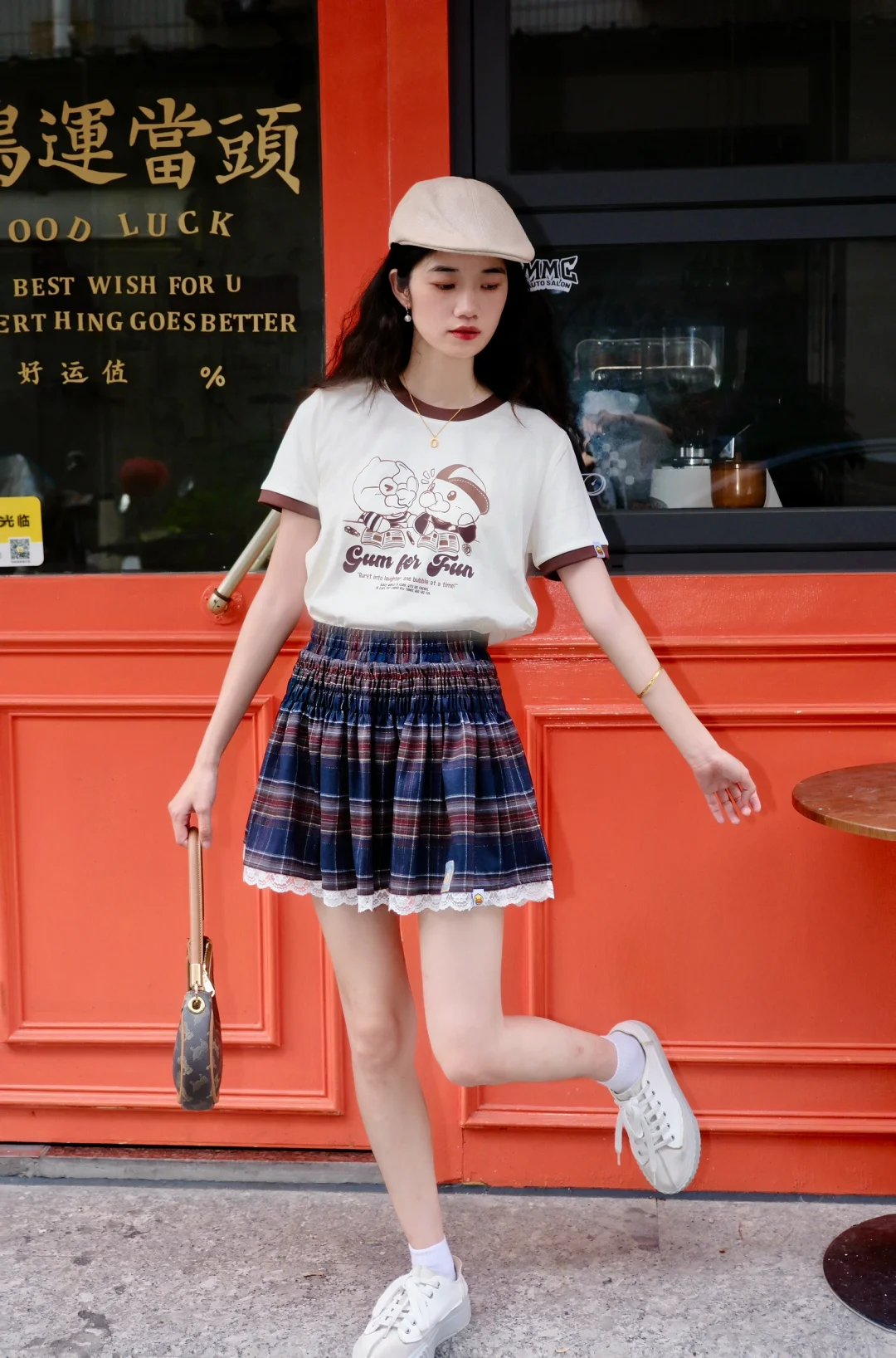 谁懂!这套奶白撞色T+蕾丝格裙 复古甜酷,好减龄!慵懒随性~ 加上贝雷帽一搭更绝! #夏日穿搭 #学院风 #甜妹穿搭 #格裙搭配 #OOTD #拍出氛围感 #复古穿搭 #夏季穿搭 #套装穿搭
