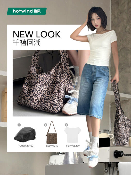 ☁️ 夏日清爽Y2K穿搭拿捏 ☁️ 把Y2K氛围穿得超日常 白色字母短袖 + 牛仔中裤 👖 清爽出街 复古慢跑鞋 👟 舒适加分 豹纹帆布包 👜 一点小狂野点缀 ✨ 周末自在松弛的慵懒感拿捏住了~ #热风 #hotwind热风 #轻松穿着自在生活 #千禧回潮 #复古穿搭 #Y2K辣妹 #夏日ootd #热风T恤 #热风牛仔裤 #周末穿搭