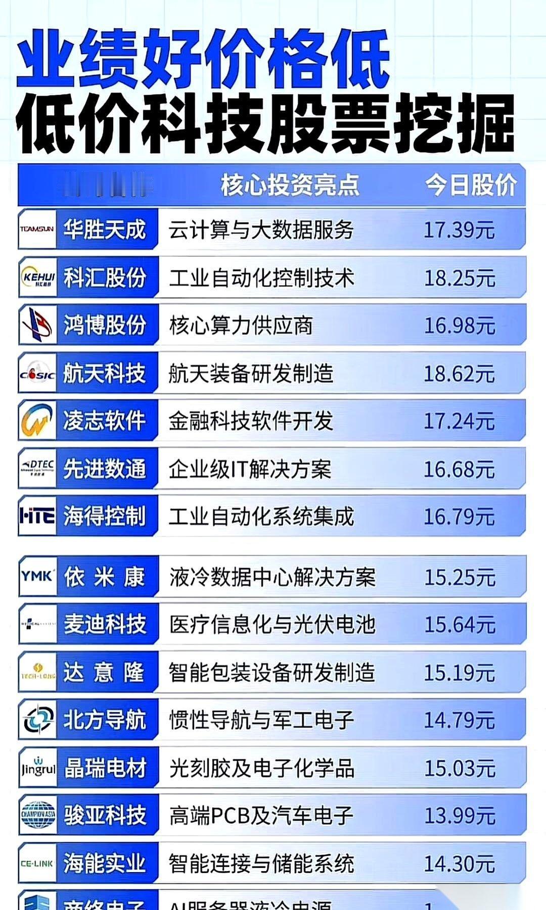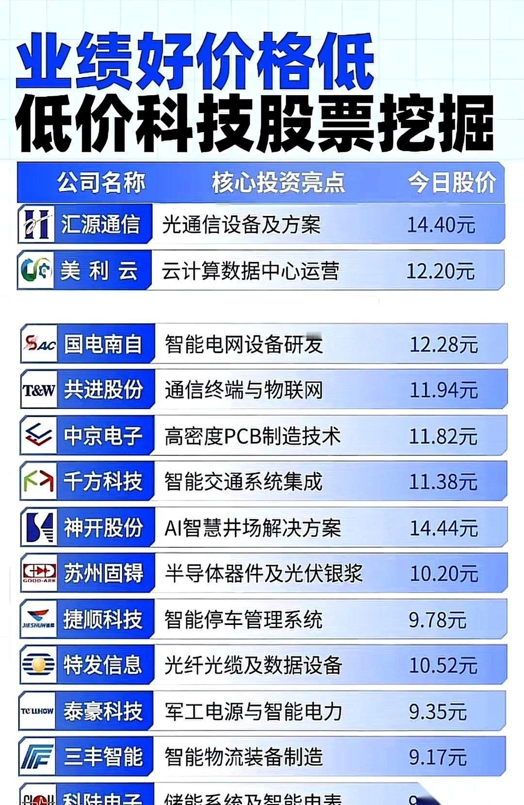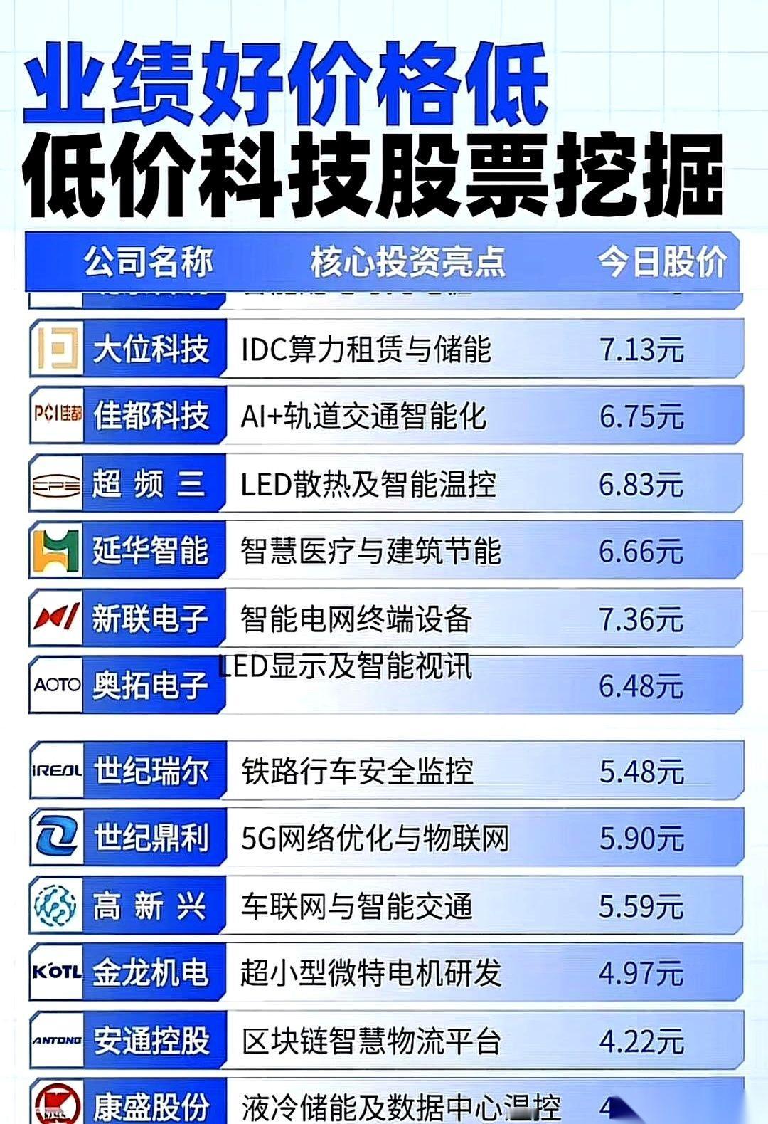 4块钱的芯片股,你敢信? 而且不是一个,是一堆。 当所有人都在追那些几百块的AI龙头,嚷嚷着算力、模型的时候,有没有人回头看看,那些给AI巨头们“拧螺丝”、“铺管线”的兄弟,现在是什么价? 我今天刷到一张清单,给我看傻了。 半导体材料、光刻胶、通信光纤、液冷、智能电网……全是我们天天念叨的那些“卡脖子”清单上的常客。结果呢?股价好多都还在十几块,甚至个位数。 真就挺魔幻的。 很多时候,市场就是个情绪化的疯子。它只看得到舞台上最亮的那束光,却忘了整个舞台是谁搭的,电是谁供的,背后音响是谁在调。 没有这些做材料的、做设备的、做连接的,那些高大上的AI模型,就是空中楼阁。皮之不存,毛将焉附?这么简单的道理,到了资本市场就没人懂了。 当然,便宜不代表一定就好,但这份清单至少说明了一件事: 在那些被聚光灯遗忘的角落里,有一大批中国的科技企业,正像一颗颗铺路石一样,默默地干着最苦最累也最关键的活儿。 这些十块、二十块,甚至几块钱的“基建狂魔”们,不是不性感,只是时候未到。 等风吹到它们身上的时候,可能就不是这个价了。