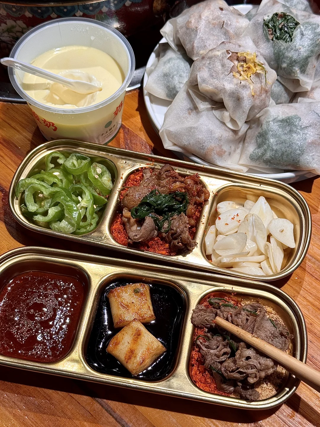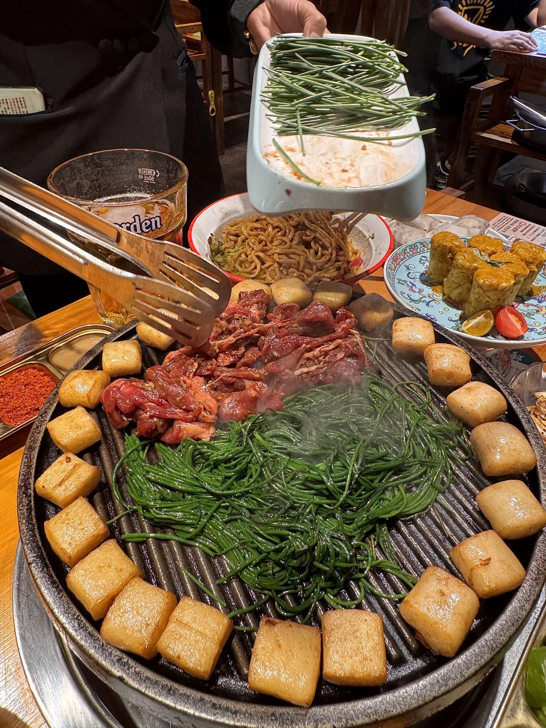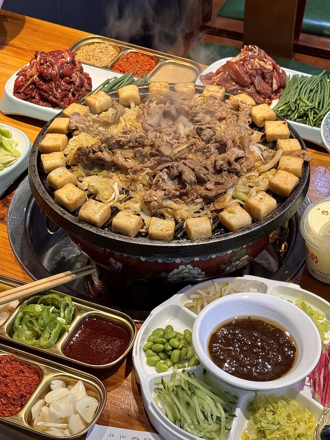 值得我坐18站地铁来也要吃的!!!真的名不虚传 跟着浙大学生来吃的,店不大饭点座无虚席,口味比外面那些网红烤肉强太多了…竟然吃到了宫廷小吃老北京奶卷!奶皮子糖葫芦奶奶的脆脆的真心一绝😭炙子烤肉是不沾酱都好吃的程度!值得我带朋友来n刷!叫:佟爷)