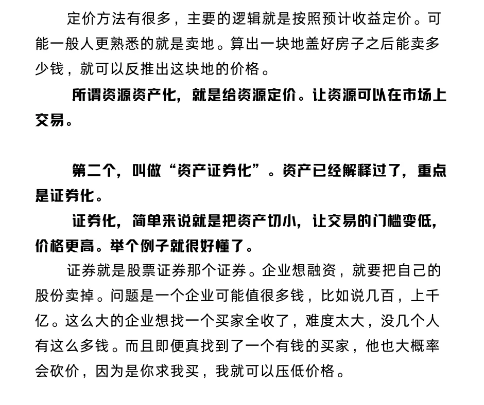 小结一下。三步,实际上是连续的逻辑。给资源定价;降低交易门槛,让他估值更高;上杠杆,把钱借过来。