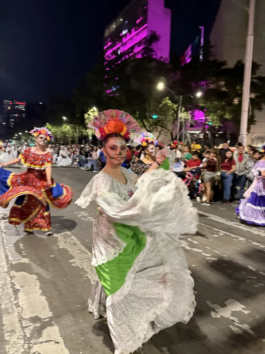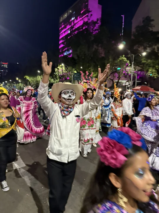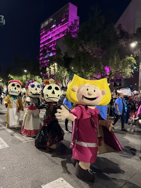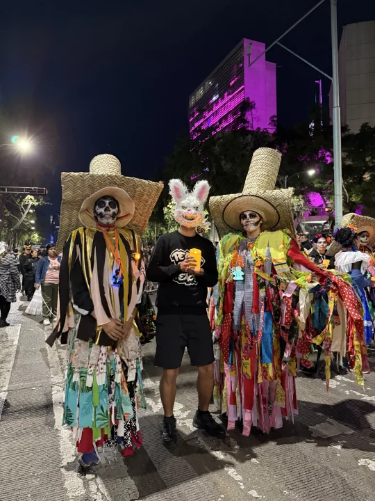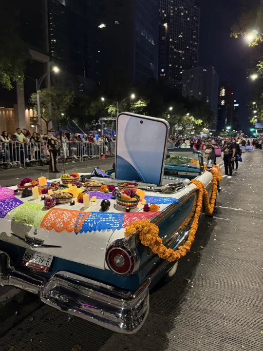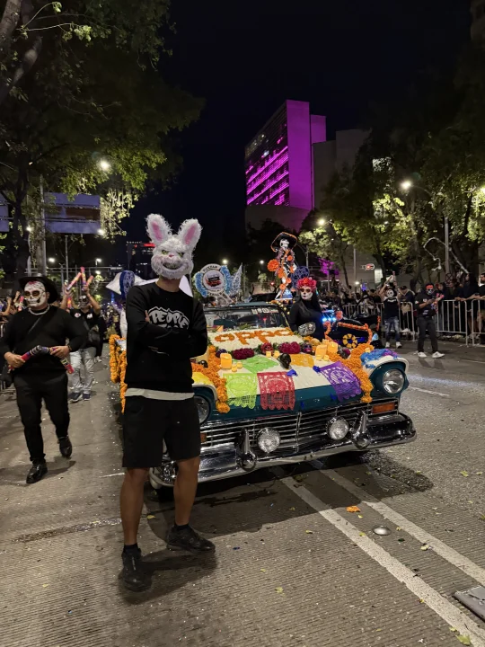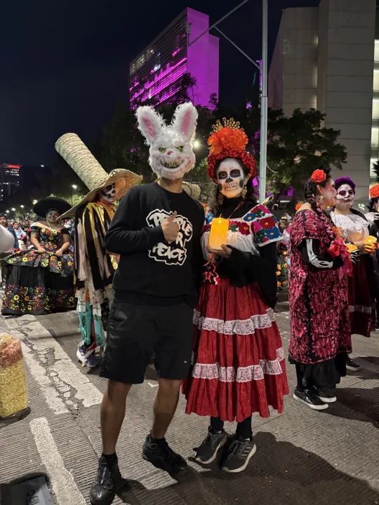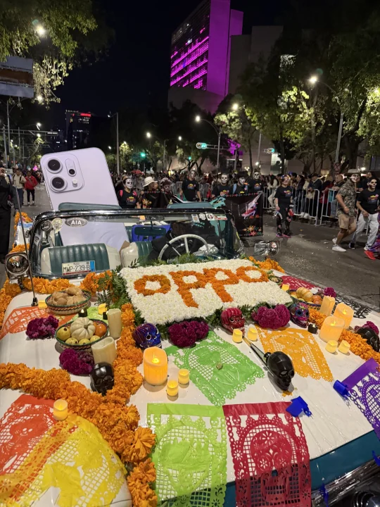 墨西哥城2025年亡灵节巡游在10月26日拉开帷幕。 游行路线从独立纪念碑出发沿着改革大道一直到宪法广场。因为出门太晚,没来得及画骷髅脸,索性买了一个兔子面具,加入亡灵的队伍里。 除了常规游行队伍外,现场还有一辆OPPO的花车,在游行队伍的C位,静止不动,所有的队伍经过,都会跟这台车合影,看起来预算没少花。 虽然目前OV在墨西哥的市场占有率不算太高,但仍期待看到中国品牌在中南美市场爆发更强的实力。