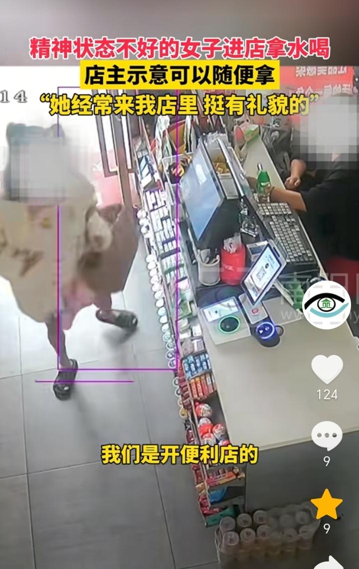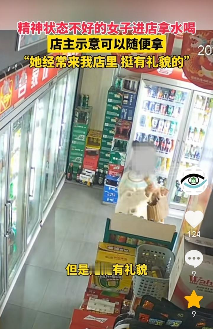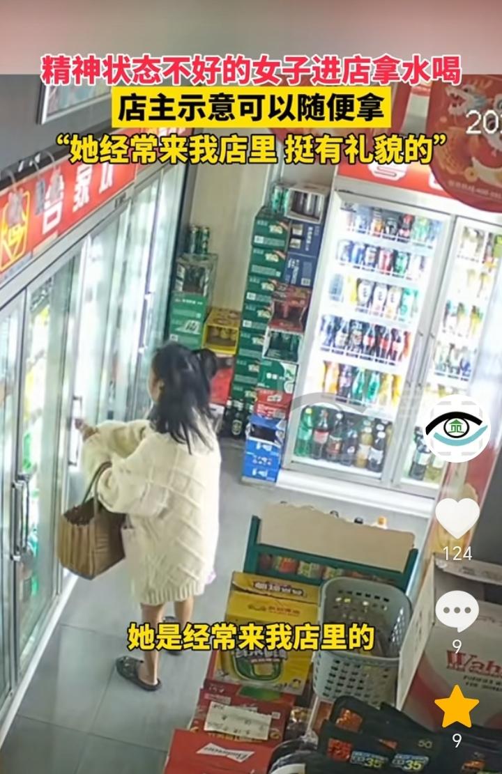 不发财都难!广东中山,一便利店店主发布了一条视频,视频中有一个女孩挎着一个包进店里和收银台店主打招呼后直接去冰柜取水喝。据店主称,这女孩是我们本地的,她精神状态有问题,经常来店里挺有礼貌的,店里也没有什么贵重的东西,她喝水的话就随便喝。 虽然一瓶水不值多少钱,但是这可以看出一个人的心是善是恶,善良的人总是会不计得失的去帮助她人,反观恶人就会斤斤计较,不说一瓶水,就算一针一线也不会轻易送出去。 店主无疑就是心地善良的人,女孩不是去一两次而是经常去,可见店主的大爱,这样的店主不发财都难,希望店主生意兴隆,财源广进。