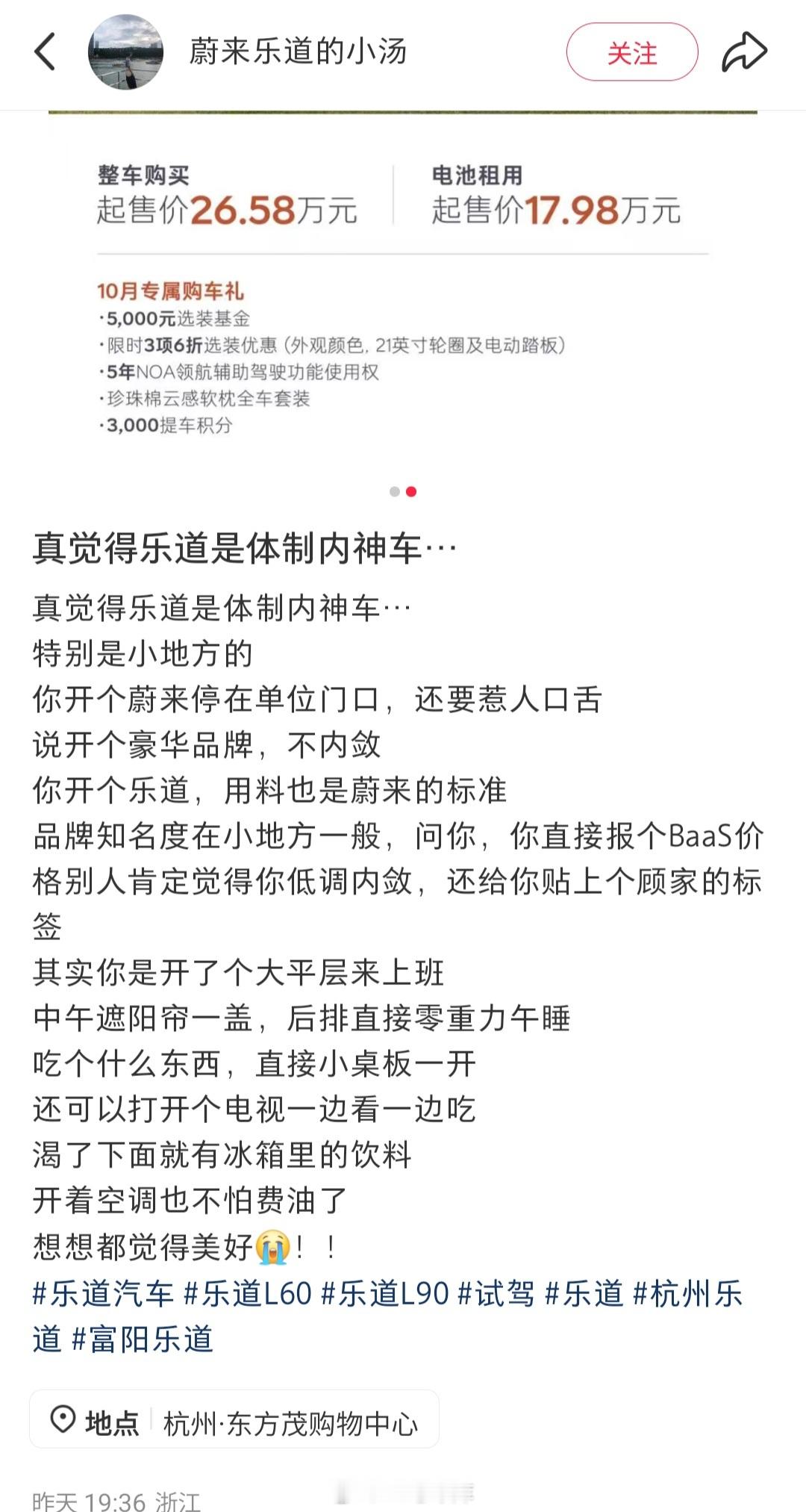 看到一篇帖子说乐道是体制内神车,谁同意谁反对?