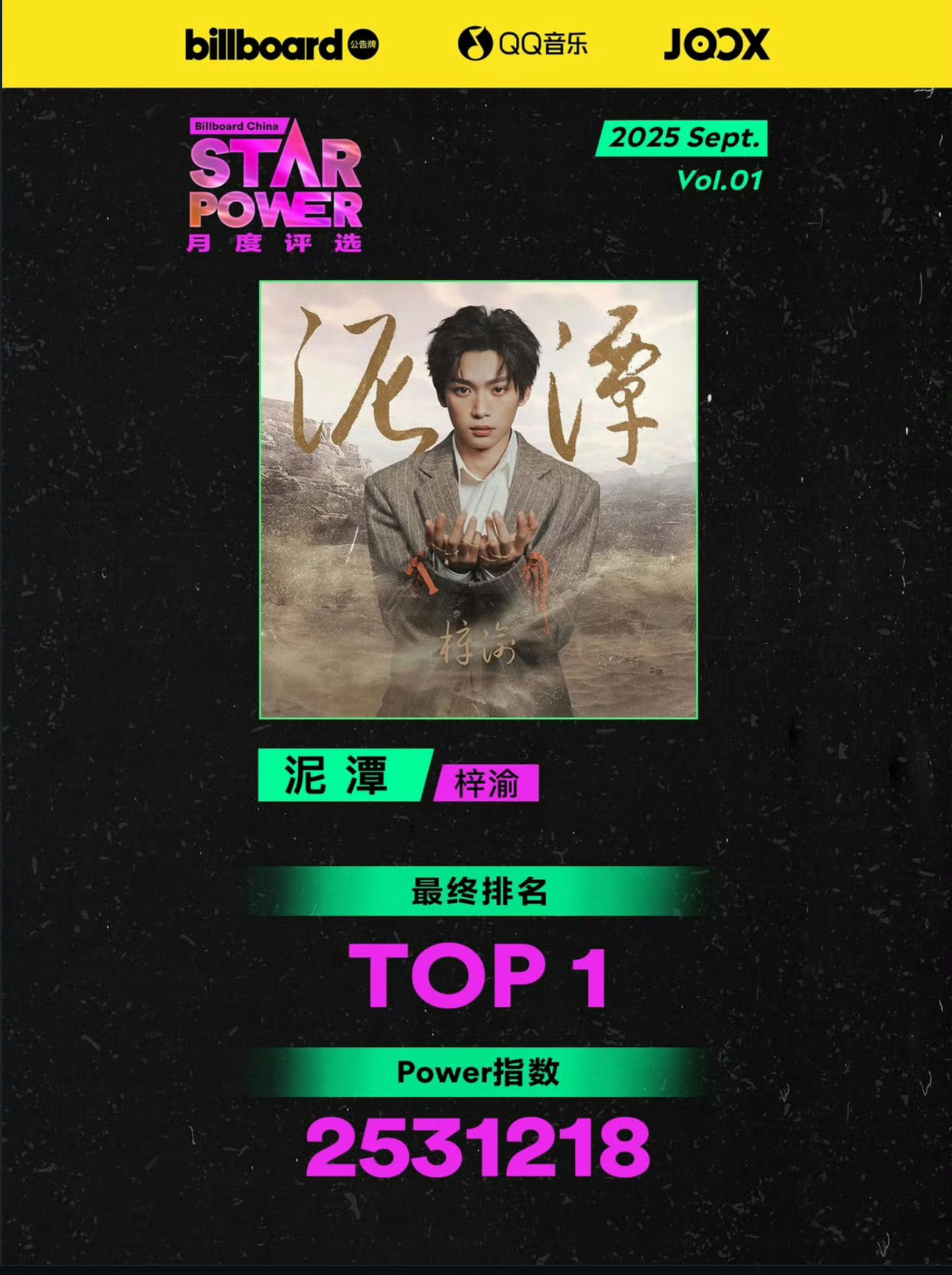 恭喜梓渝单曲《泥潭》获Star Power月度评选TOP1🏆Power指数2531218!解锁线下专属定制曝光——全国范围内所有滴滴出行车载屏宣推一周!