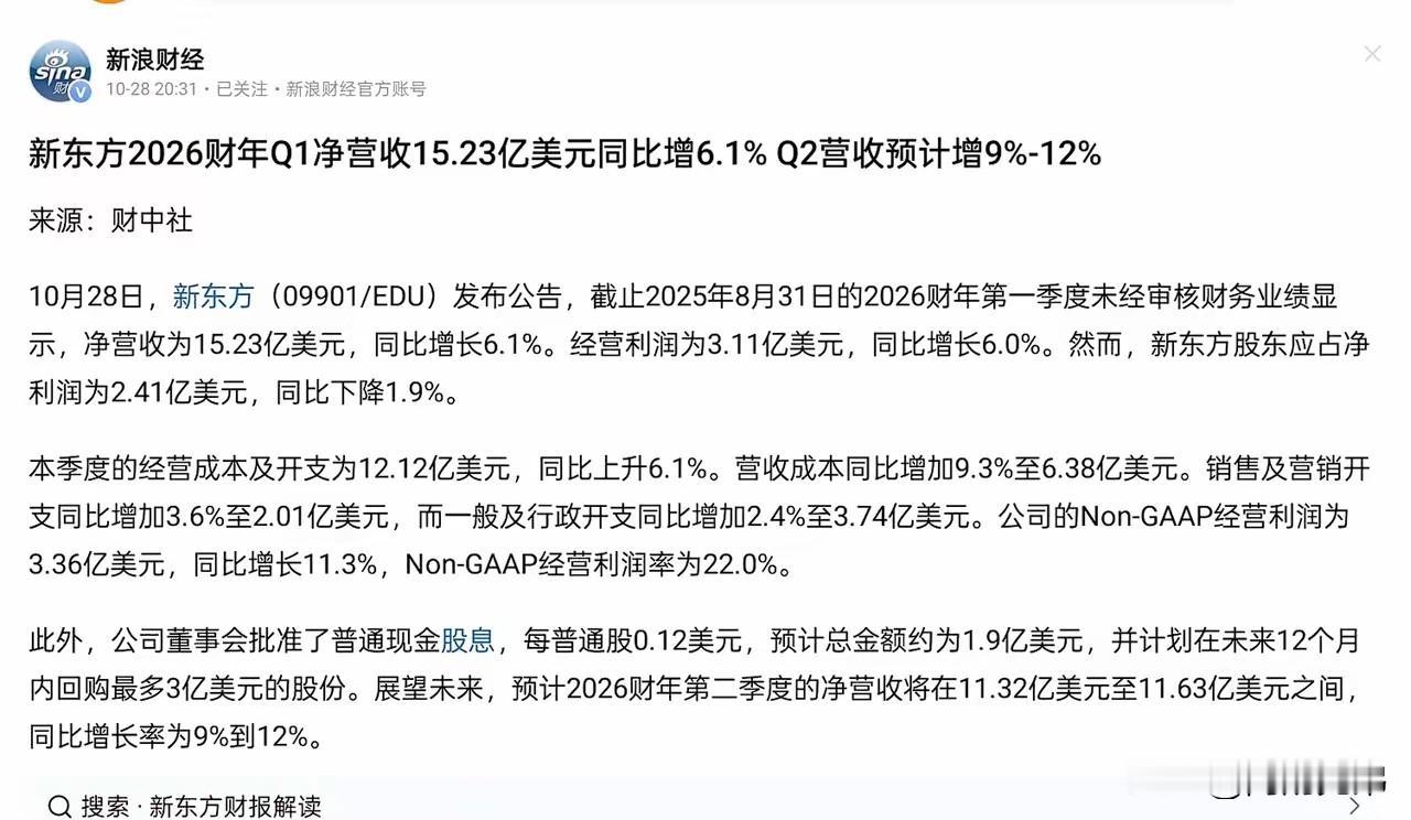 新东方2026财年第一季度盈利2.41亿美元。 看到俞敏洪的新东方盈利几亿美刀后,各路人马开始竭力嘲笑新东方和老俞了。 因为他们内心的不平衡,底层人心理作用,看不得别人好的劣根性,以及盲目崇拜董老师,而带来的站队。 他们认为,老俞和新东方绝对不能比董老师的公司发展的好,不然扎心。 民营学校到处都有,教培行业更是雨后春笋般冒出来,能说他们只为了赚钱吗?