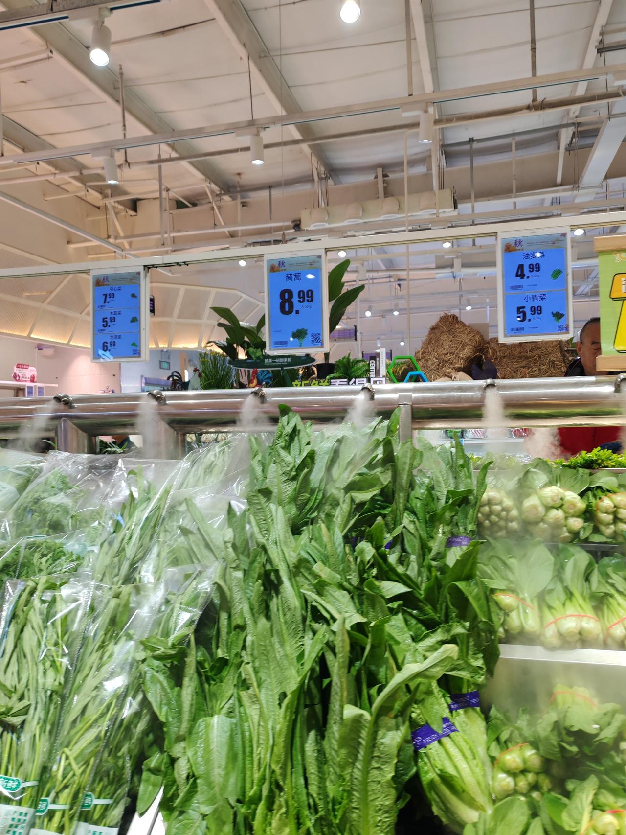 蔬菜就像镀了金似的 10月29日,坐标西安。此刻我在商场吃完午饭,来到负一层的超市转一圈,发现蔬菜价就像坐火箭似的飙升,贵的离谱。 前段时间2块多钱1斤的黄瓜如今5.99元,觅菜8.99元/斤,豆王7.99元/斤,苦菊9.99元/斤,青菜5.99元/斤,韭菜5.99元/斤,油麦菜7.99元/斤,芥菜6.99元/斤,菠菜11.9元/斤,螺丝椒5.99/斤,小西芹7.99元1斤,就连平常很便宜的西葫芦也变成了3.99元。 我只随便拍摄了几张,走了一圈,感觉便宜的蔬菜只有白菜0.99元/斤,包菜1.49元/斤,萝卜0.89元/斤,似乎除了萝卜,其他菜价都在一元以上,绝大部分都在五元以上,而超市里今天来了特价肉才卖4.99元/斤,看来真是蔬菜超过了肉价钱。 这波蔬菜价狂飙,我猜想或许跟西安前段时间持续了一个多月的雨天有关系,此刻秋季来临,时令蔬菜越来越少,大部分是外地菜或者大棚菜,成本一高,售价自然提升。 朋友们,不知你们那里的菜价行情如何?还能大口吃蔬菜吗?