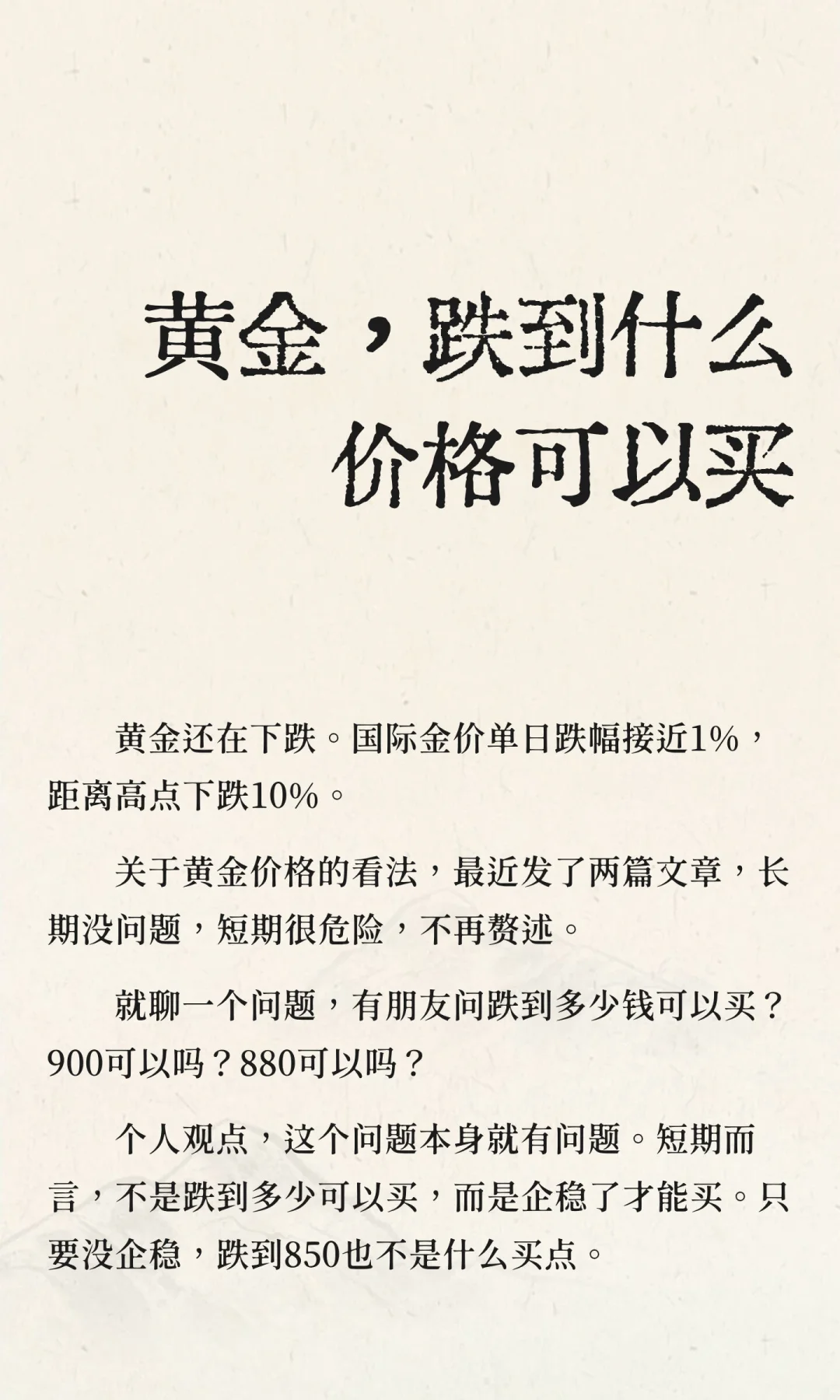 就聊一个问题,有朋友问跌到多少钱可以买?900可以吗?880可以吗?