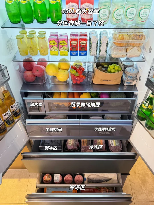 大容量合理的收纳储存设计让每样东西都有自己的位置,再也不用翻来翻去找食材。