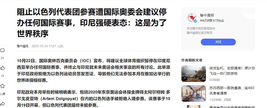 国际奥委会实在太霸道了,要求全部国际体育赛事取消在印尼举办,可以说“封杀”了印尼,可万万没料到,印尼也相当强硬,压根不拿奥委会的要求当回事。 2025 年 10 月 19 号,雅加达第 53 届世界体操锦标赛按时开赛了,79 个国家和地区的 500 多名运动员都来了,赛场里那叫一个热闹,中国队还拿了 3 金 1 银 3 铜的好成绩呢。 可谁能想到,开赛前后这风波闹得比比赛还大,根子就出在以色列那 6 名运动员身上,其中还有东京奥运自由操金牌得主多尔戈皮亚特,那可是体操界的大腕儿,为了这场比赛练了快十年,结果连雅加达的门都没摸着。 要说这事儿真不怪印尼。印尼打 1945 年独立起就没跟以色列建交,人家一直站巴勒斯坦这边,觉得以色列在加沙的行动太过分了。 这次拒签就是明说的:只要以色列不承认巴勒斯坦有自由和主权,就坚决不接触。这是人家国家几十年的立场,而且国内 2.8 亿人口里穆斯林占了绝大多数,老百姓都支持巴勒斯坦,几十万民众签名反对以色列运动员参赛,政府这么做就是顺了民意。 再说了,签证这事儿本来就是主权国家的权力,国际体操联合会都说了,他们管不着人家国家的主权问题,这道理多明白啊。 可国际奥委会倒好,上来就耍霸权。10 月 23 号直接发声明,说要终止和印尼聊任何奥运举办的事儿,还逼着全球所有体育机构,以后别在印尼办任何国际赛事和会议。 这哪是建议啊,分明就是封杀令!印尼本来还想借着办这次世锦赛攒人气,为申办 2036 年奥运会铺路,之前人家办过亚运会、篮球亚洲杯,口碑都不错,结果就因为坚持自己的立场,连未来的办赛机会都要被掐了。这不是欺负人嘛,凭啥人家坚持国家立场就得受这委屈? 更让人恶心的是国际奥委会的双标嘴脸。2022 年俄乌战争的时候,他们二话不说就禁了俄罗斯参加巴黎奥运会,就算后来松口,也只让运动员以 “中立身份” 参赛,连国旗国歌都不让用。 可到了以色列这儿,2024 年巴黎奥运会上照样举国旗、奏国歌,一点事儿没有。同样是国际冲突,待遇差这么多,合着只许符合西方利益的国家受待见? 俄罗斯碍了他们的事就往死里踩,以色列是 “小弟” 就捧着护着,这体育精神早就被他们丢光了! 关键是印尼压根没怂,硬气得很。面对国际奥委会的封杀,印尼青年与体育部长直接说了,他们早知道会有后果,但立场绝不动摇,还强调印尼会继续在全球体育赛事里发挥作用,办赛就得维护安全和公众利益。 奥委会主席也表态,理解政府的决定,虽然遗憾但绝不妥协。你想想,印尼花大价钱翻新了能塞上万观众的竞技场,准备得那么充分,哪能因为别人的威胁就改主意?人家心里门儿清,赛事可以不办,但国家立场不能丢。 以色列那边倒是急了,又是找印尼协商,又是找国际体操联合会申诉,最后还告到国际体育仲裁法庭,要求逼印尼发签证、换举办地或者取消赛事,结果全被驳回了。 其实运动员也冤,多尔戈皮亚特还发了训练馆照片,配文 “多年付出,连赛场都没摸到”,看着确实让人心疼。但这账真不能算在印尼头上,要怪就怪国际奥委会把体育搅进了政治浑水,让运动员成了牺牲品。 以前各国都抢着申办奥运会,现在为啥不少国家都不愿意接了?就是因为国际奥委会太霸道,办个赛要受一堆窝囊气,还得看他们脸色。 就说 2019 年马来西亚东南亚运动会,也拒签过以色列游泳队,后来在压力下让步了,只挨了口头警告。可印尼硬扛到底,就换来全面封杀,这规矩不就是他们想怎么定就怎么定吗? 说到底,印尼这硬气劲儿真是解气。他们用自己的行动告诉国际奥委会,主权国家的立场不是随便能被威胁的,体育也不该是政治的傀儡。 现在赛事顺顺利利办完了,中国队拿了金牌榜第一,其他国家运动员也赛得尽兴,这就说明没以色列参赛,比赛照样精彩,国际奥委会的封杀根本没起多大作用。 我就想问问国际奥委会,你们天天喊着 “体育无关政治”“体育为和平服务”,现在干的都是些啥事儿? 拿着鸡毛当令箭,逼各国按你们的规矩来,不顺从就打压封杀,再这么折腾下去,迟早得被全世界的体育爱好者抛弃。体育的本质是看运动员拼搏,不是看你们搞政治把戏,真当大伙儿眼瞎啊! 这事儿也给所有国家提了个醒,别惯着国际奥委会的臭毛病,国家主权和立场才是最金贵的。印尼这口气咽得硬气,就算丢了奥运申办机会,也在全世界面前挣回了骨气,这样的国家才让人佩服。 希望以后的体育世界能干净点,少点算计,多点纯粹,别再让这些乱七八糟的政治玩意儿毁了体育的初心。