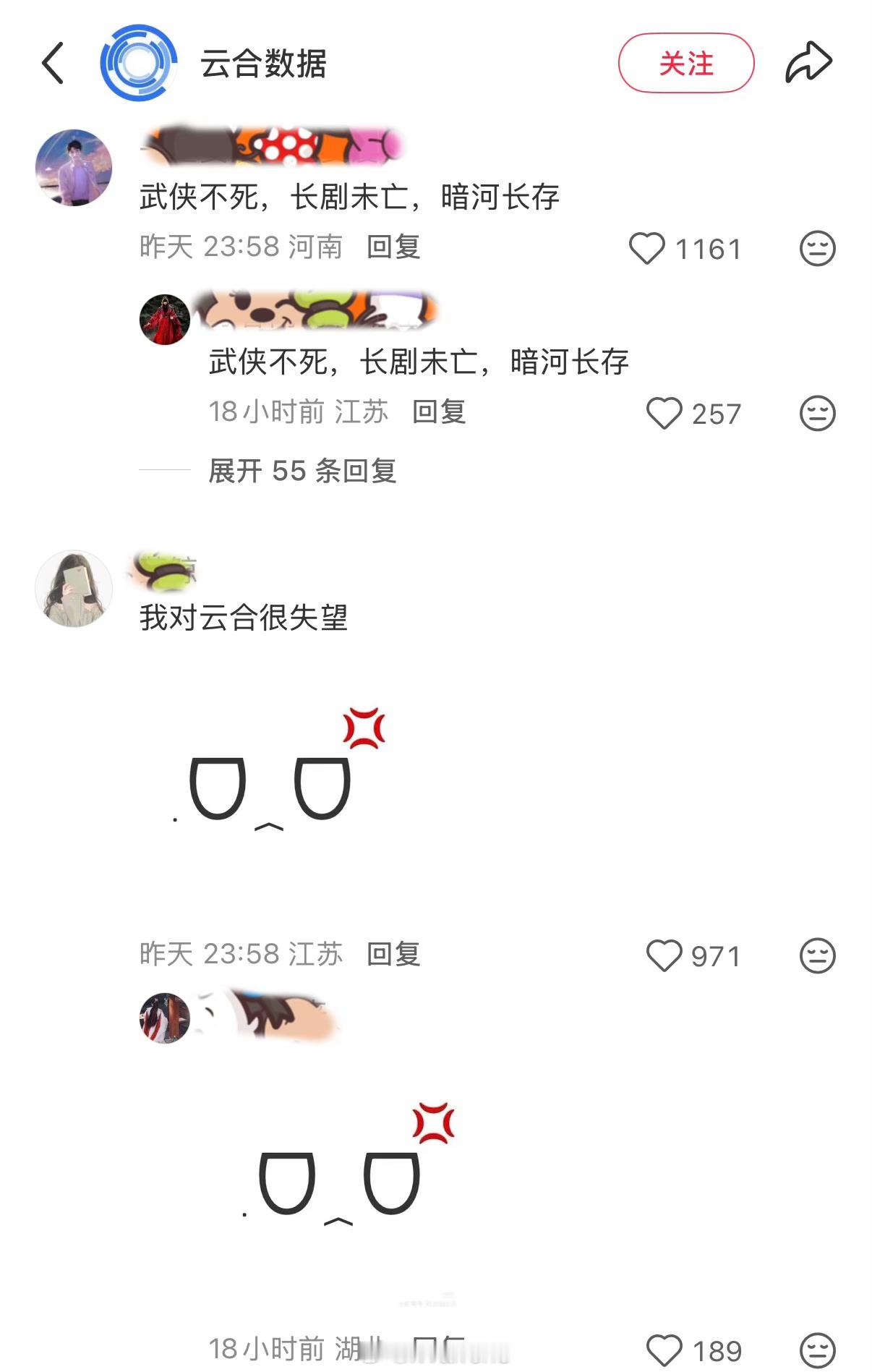 刚去看了云合评论区……龚俊新剧暗河传剧粉还挺有梗的呀![并不简单]暗河传 云合评论区