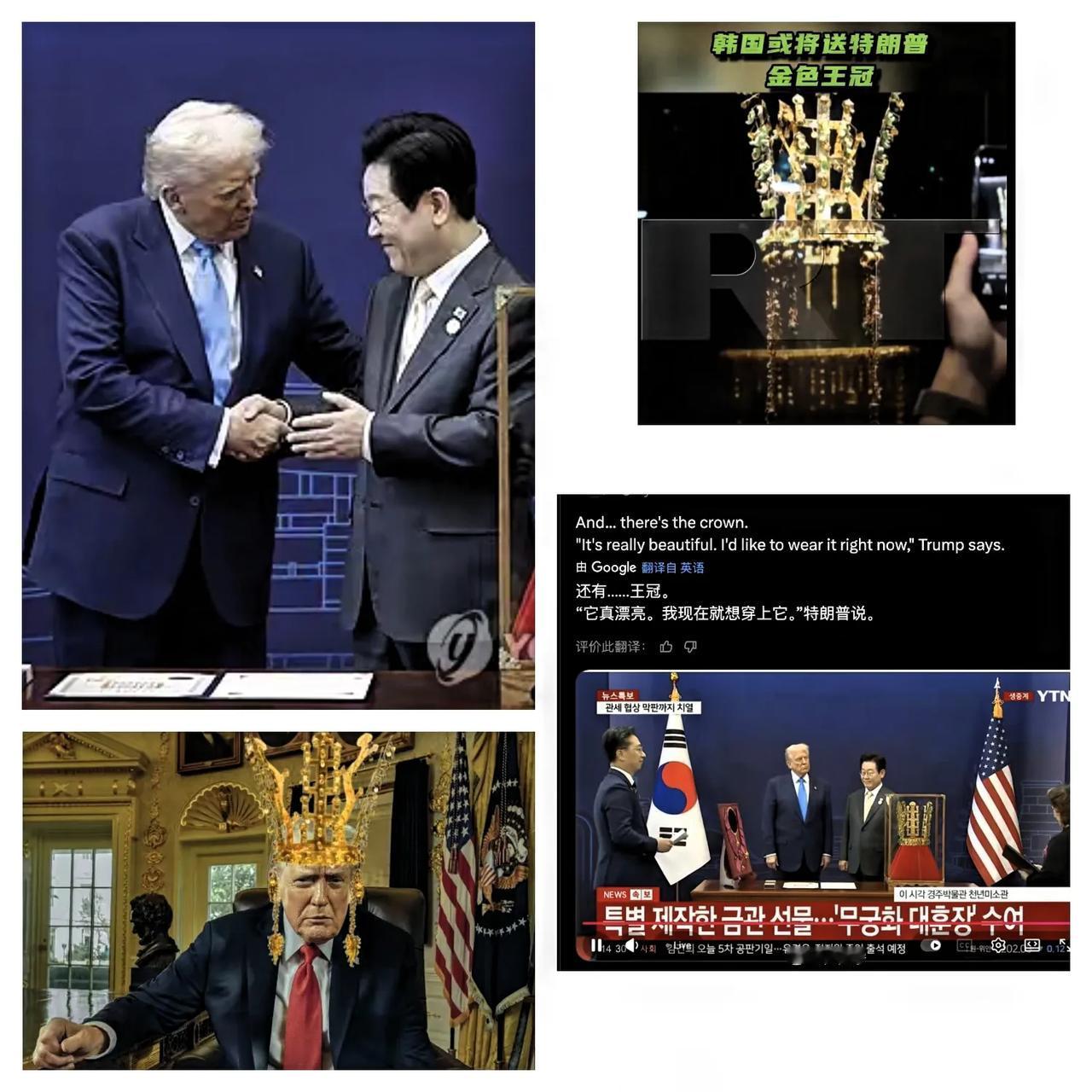 不得不说, 在送礼这事儿上, 韩国是真会抓重点! 直接给老特送了顶金色王冠模型,原型还是自家新罗王朝的文物,这一下就戳中喜好了。 你看老特的反应,立马发帖夸王冠漂亮还想戴,这不就是明摆着“沦陷”了嘛! 再看看日本高市送的啥?要么是别人用过的高尔夫用具,要么是象征短命的樱花树,一送还250棵,这送礼水平差得可不是一点半点。 这种“外交送礼”拼的就是懂不懂对方心思,韩国这次精准踩中需求,日本却连基本的忌讳都没避开,难怪网友说“日韩争爸赛”韩国完胜。