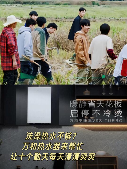 我还记得节目刚开始家徒四壁的样子,真的很担心他们会突然跑路,现在终于慢慢有了家的温暖,看着他们不管吃饭还是睡觉都超级香,每天干了一天的活就想洗个热水澡,可我发现他们的热水器要么忽冷忽热,要么是水压太小,总是出各种各样的问题,节目组已经贴心的换上了李昊推 荐的万和安睡洗 V9S热水器,它有260% 增压瀑布洗,超大水量完全够10个男孩随时洗澡,洗去一天的疲惫,还是一级暖浴认证的,储能循环恒温黑科技再也不怕被冷热烫水刺激到[害羞R]