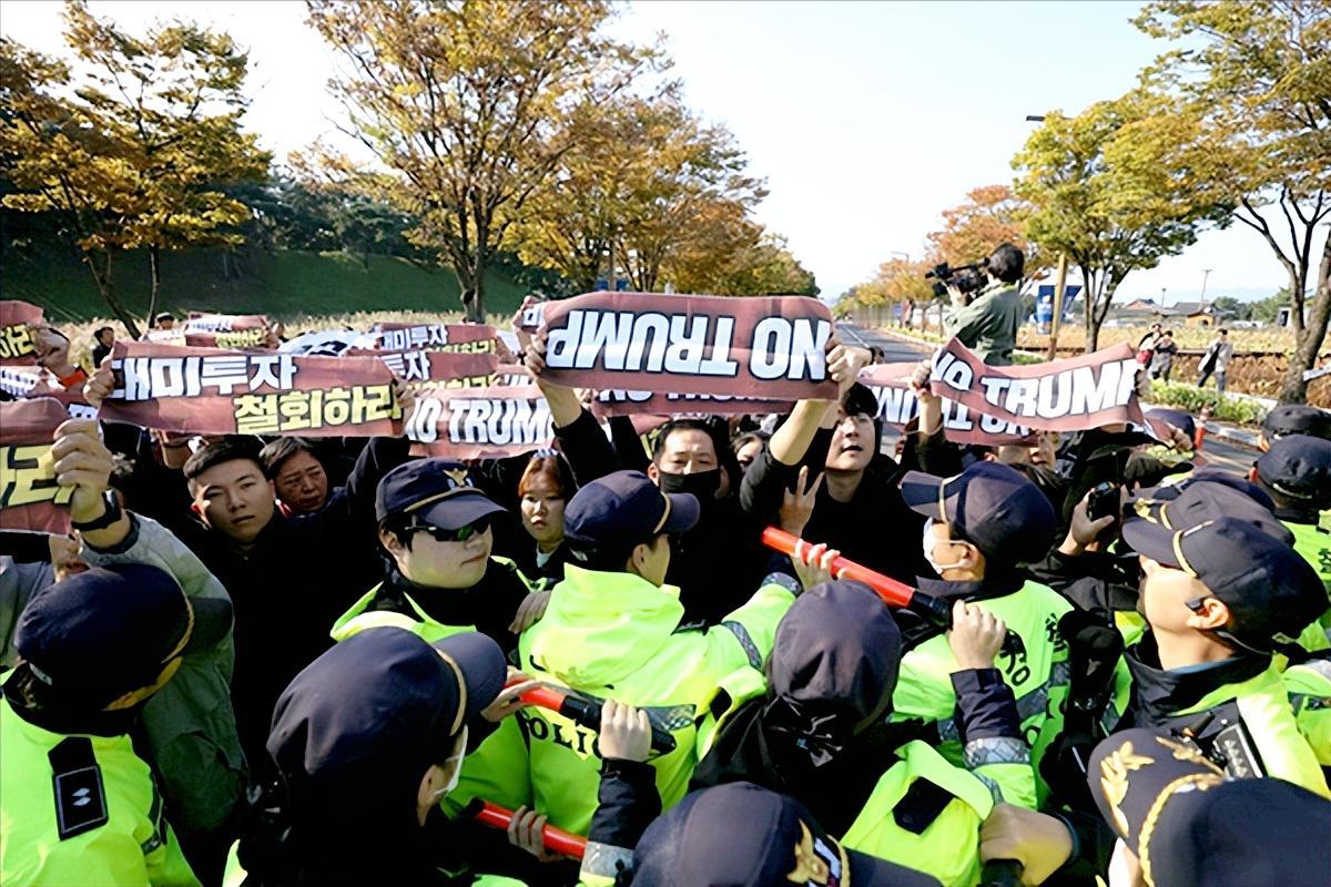 特朗普又赢了 高调宣布“美韩贸易协议差不多敲定了”, 韩国咬着牙签下的“不平等条约”! 还记得七月份双方煞有介事地庆祝协议达成吗?结果一谈到3500亿美元投资的具体方案就谈崩了。折腾了几个月,韩国最后还是低头认输——答应分期向美国上贡2000亿美元现金,外加1500亿的造船合作。 韩国官员金容范在发布会上小心翼翼地解释,说什么每年最多投200亿,要用特殊公司结构分摊风险,还设置多重保障措施。说得冠冕堂皇,实际上就是怕这笔巨款打水漂!更可笑的是,协议里白纸黑字写着:如果20年内收不回本金,可以调整利润分成。这不明摆着让韩国自己承担风险吗? 特朗普口口声声说“美韩结婚了”,可这场婚姻从一开始就不平等!美国对韩国汽车关税仍然15%,而日本早就享受15%的关税了。美国这算盘打得可真精,专挑对自己有利的下手! 韩国民众的眼睛是雪亮的。场内在握手言和,场外数百人聚集抗议特朗普。民调显示,超过80%的韩国人认为美国的要求根本是抢劫!韩国前总统候选人权英国说得一针见血:“各国领导都在讨好特朗普,就为了让他降几个点的关税?太荒谬了!” 这场所谓的“贸易协议”,本质上就是美国仗着霸权地位对韩国进行的公开勒索。韩国带着巨额嫁妆“倒贴”,美国坐享其成。如果这都不叫霸权,什么叫霸权?!