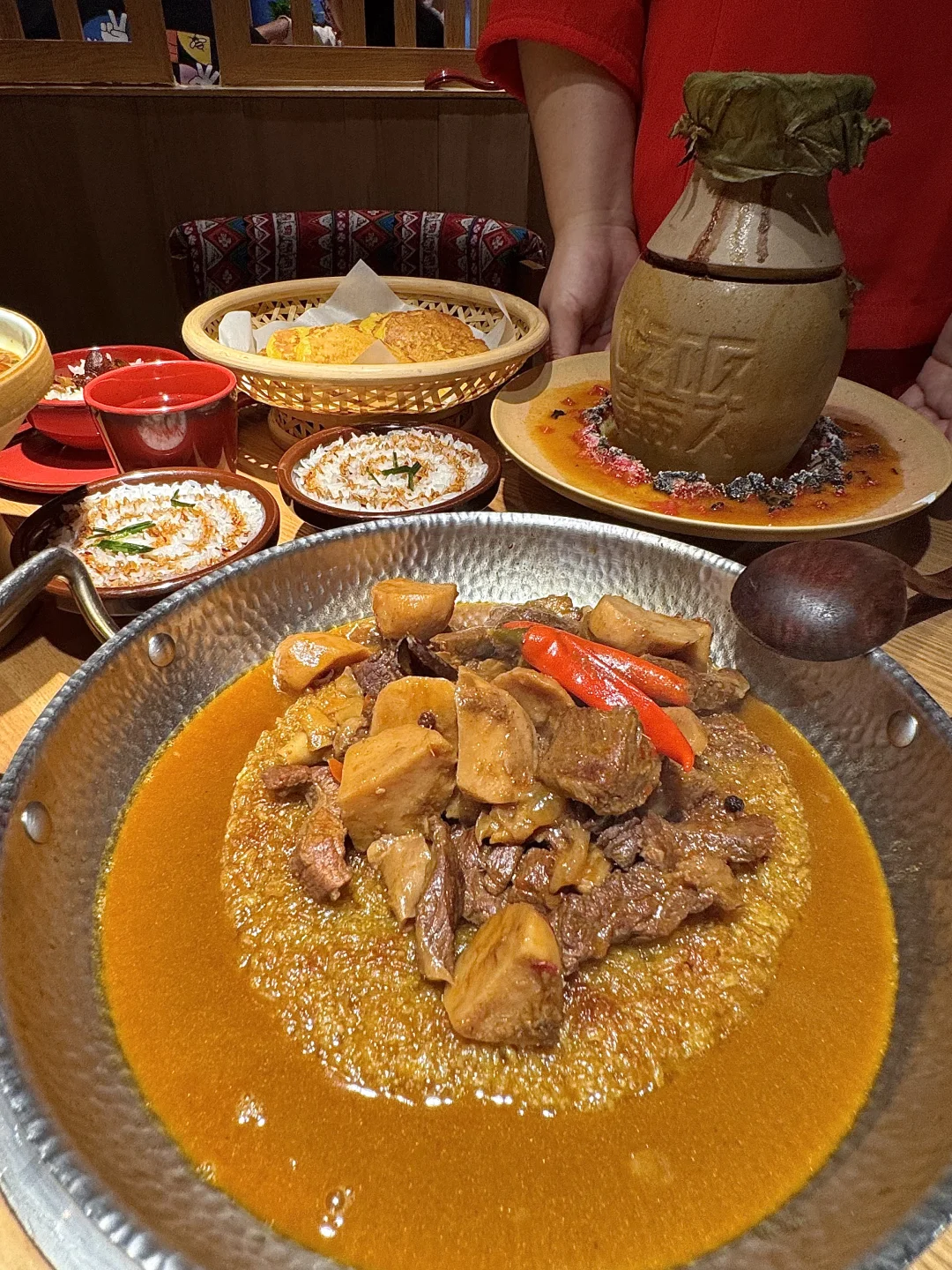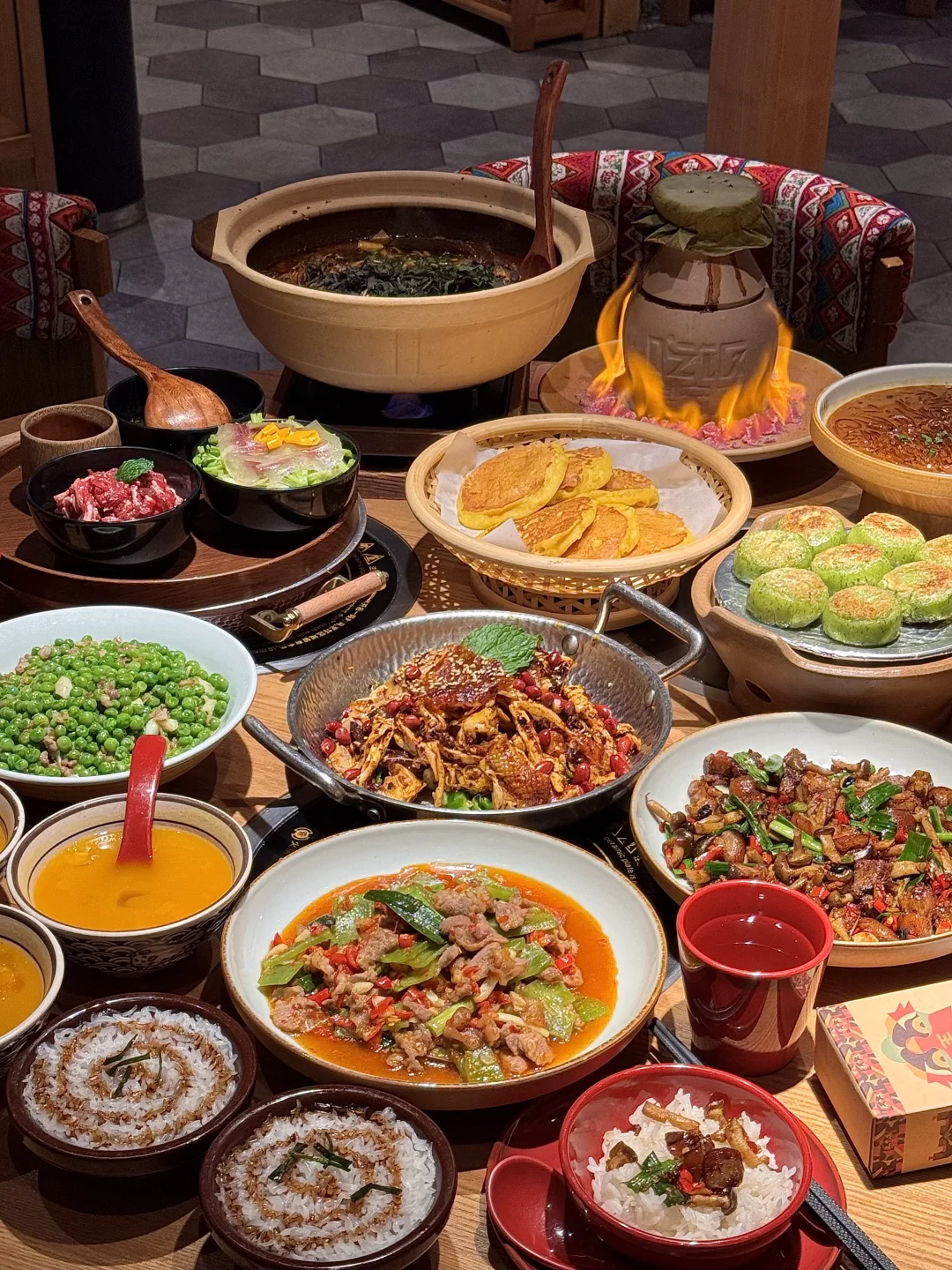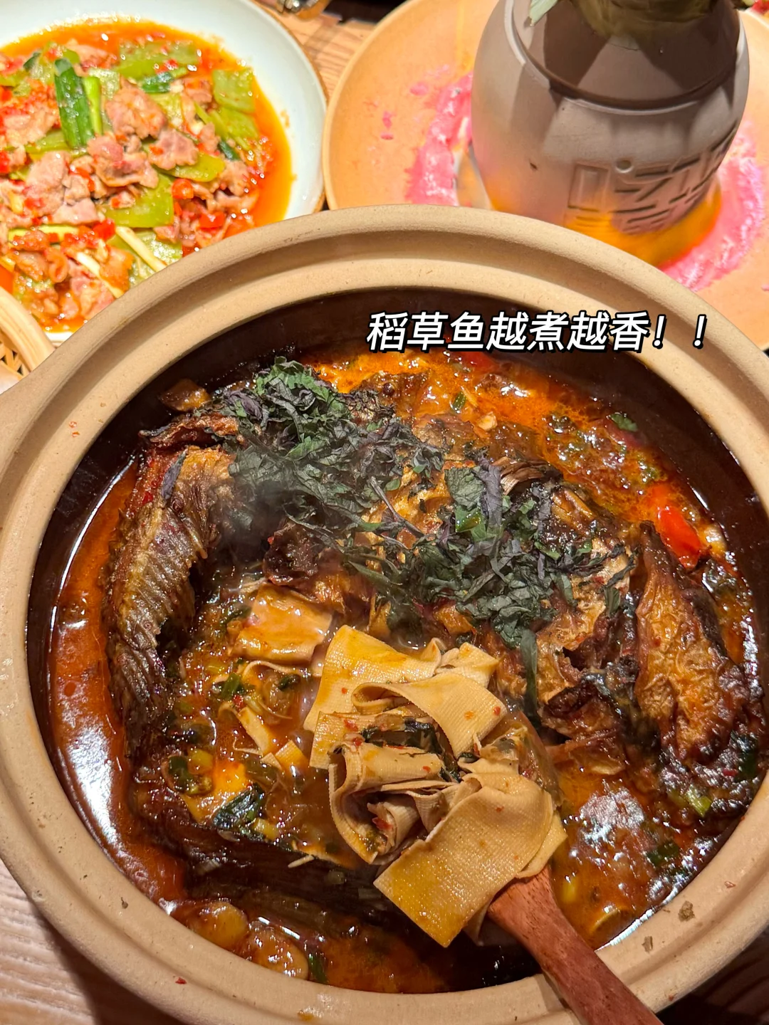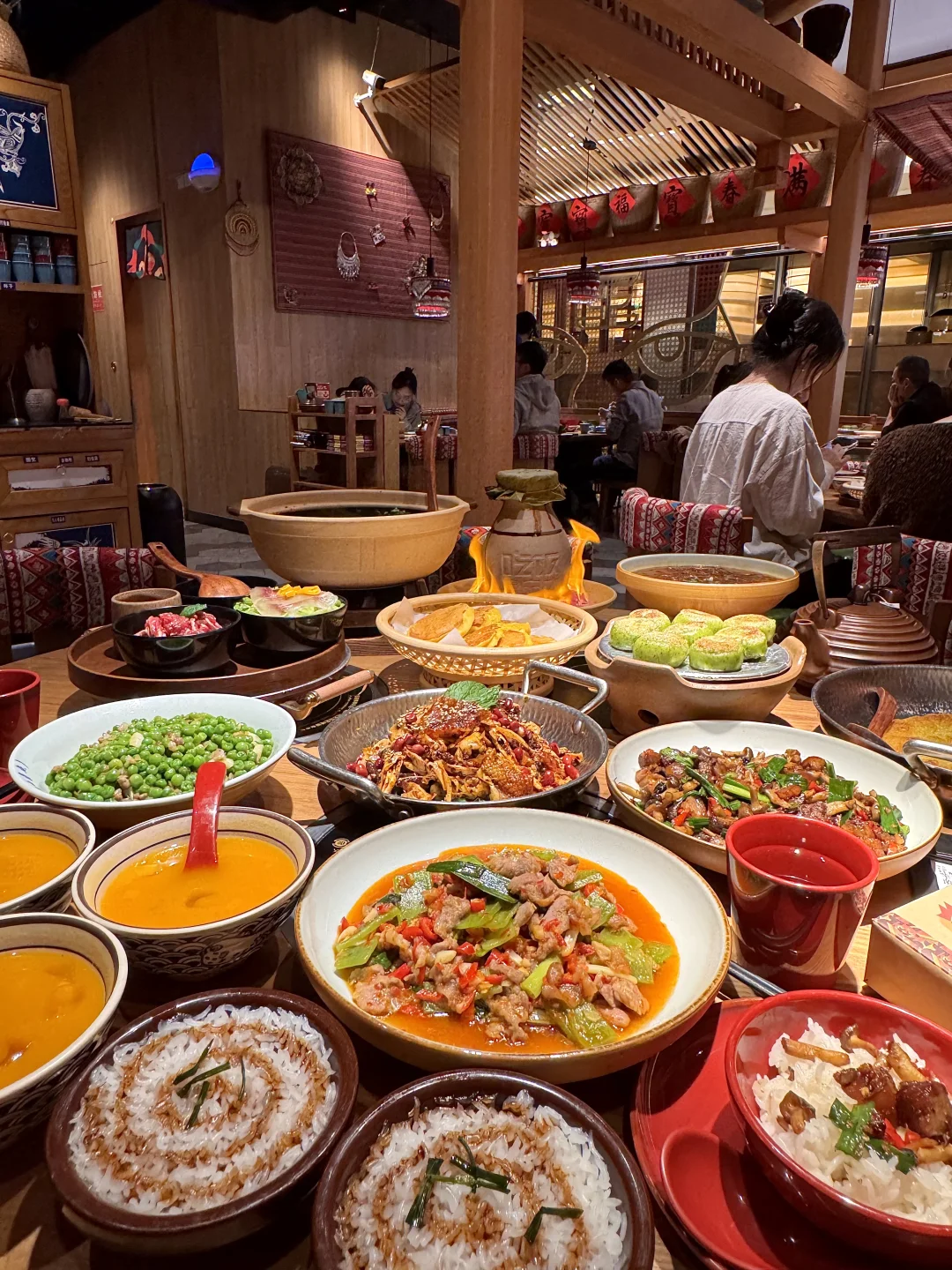 本湘女作证!!湖南本地人都会去吃的湘西菜!叫📍吃饭皇帝大)进门就知道没来错!各种带有湘西地域的特色摆件、明档厨房现点现做…平价又好吃! 我们五个人点了满满一桌!!一定要试试的罐罐牛肉,上桌吆喝声配着点火仪式 好有氛围!牛腩连筋带肉软烂入味,倒进锅巴脆里香麻了😭柴火稻草鱼,先炸后煮,鱼肚里还有糯米好惊喜!鲜甜入味真的巨好吃!! 还有手撕扁担鸡、土家摆子肉、猫儿山小黄牛…怎么可以每道菜都这么好吃!我好爱啊啊
