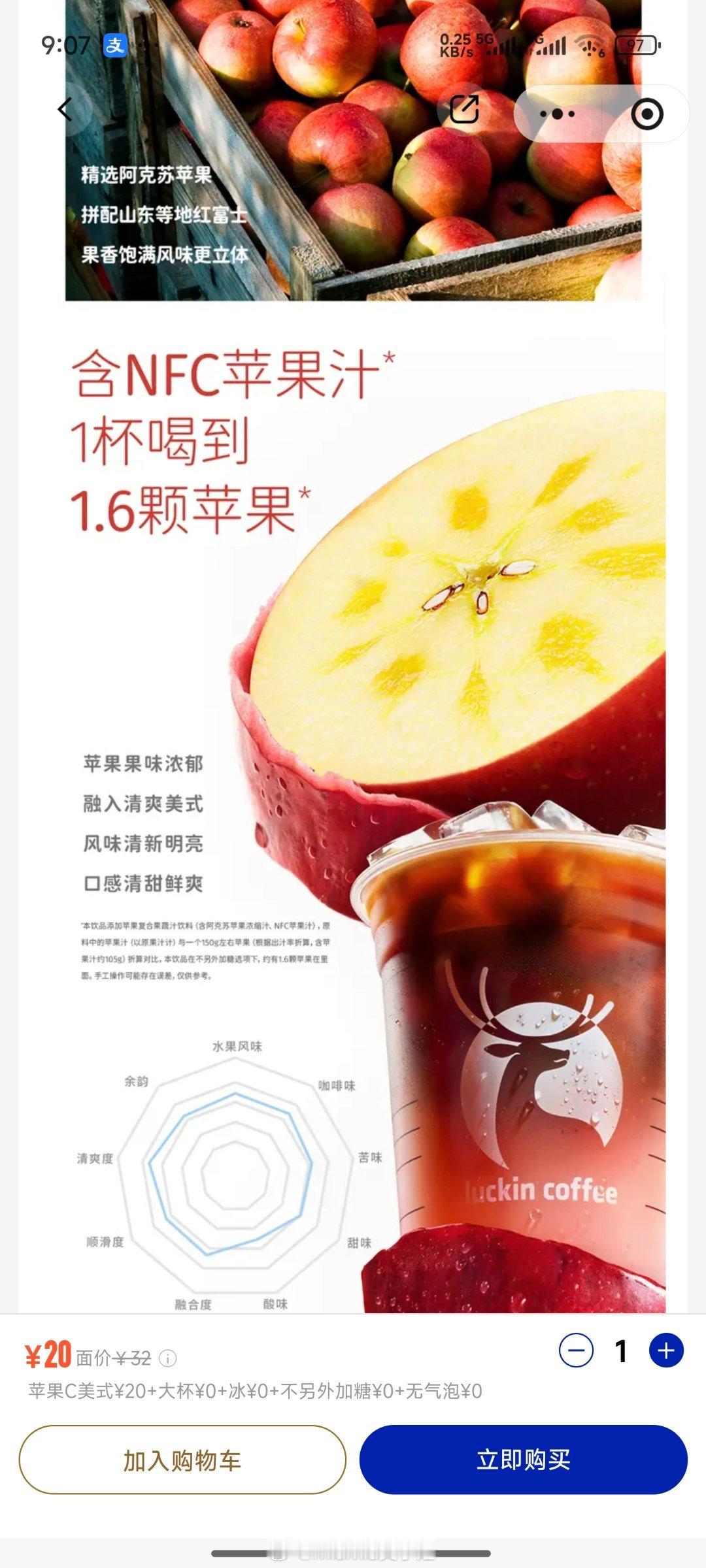 (瑞幸页面宣传说一杯能喝1.6个阿克苏苹果,我这1L≈12个苹果,按数学公式算下来他们的美式应该是加133.33ml果汁,而我加的是250ml果汁,那我的一杯≈喝了3个苹果!这宣传效果翻倍啊[偷笑])
