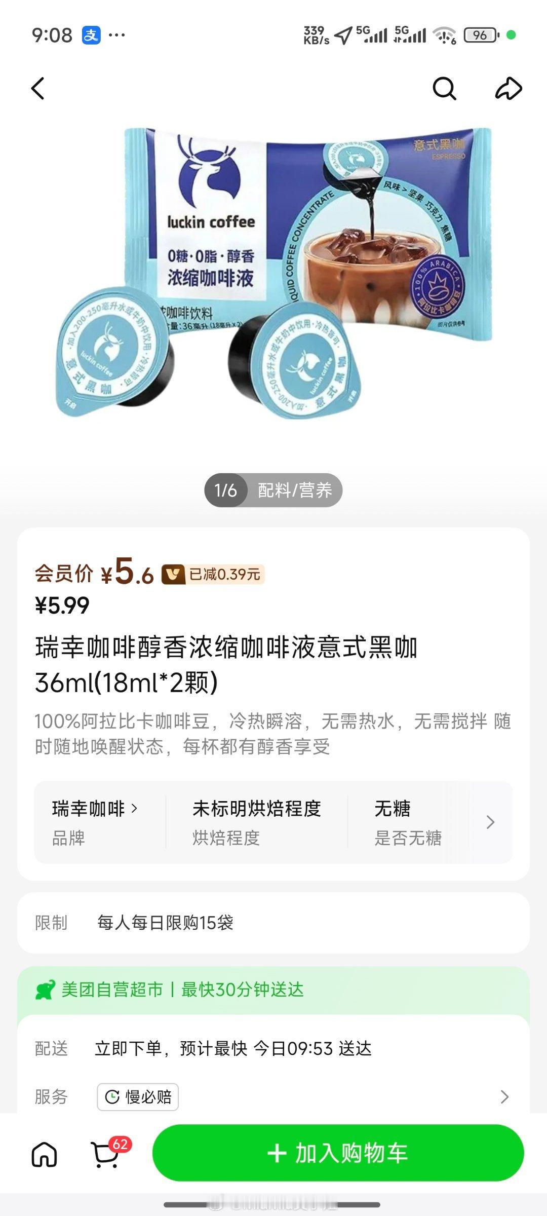 再买两个瑞幸浓缩咖啡液~¥5.6