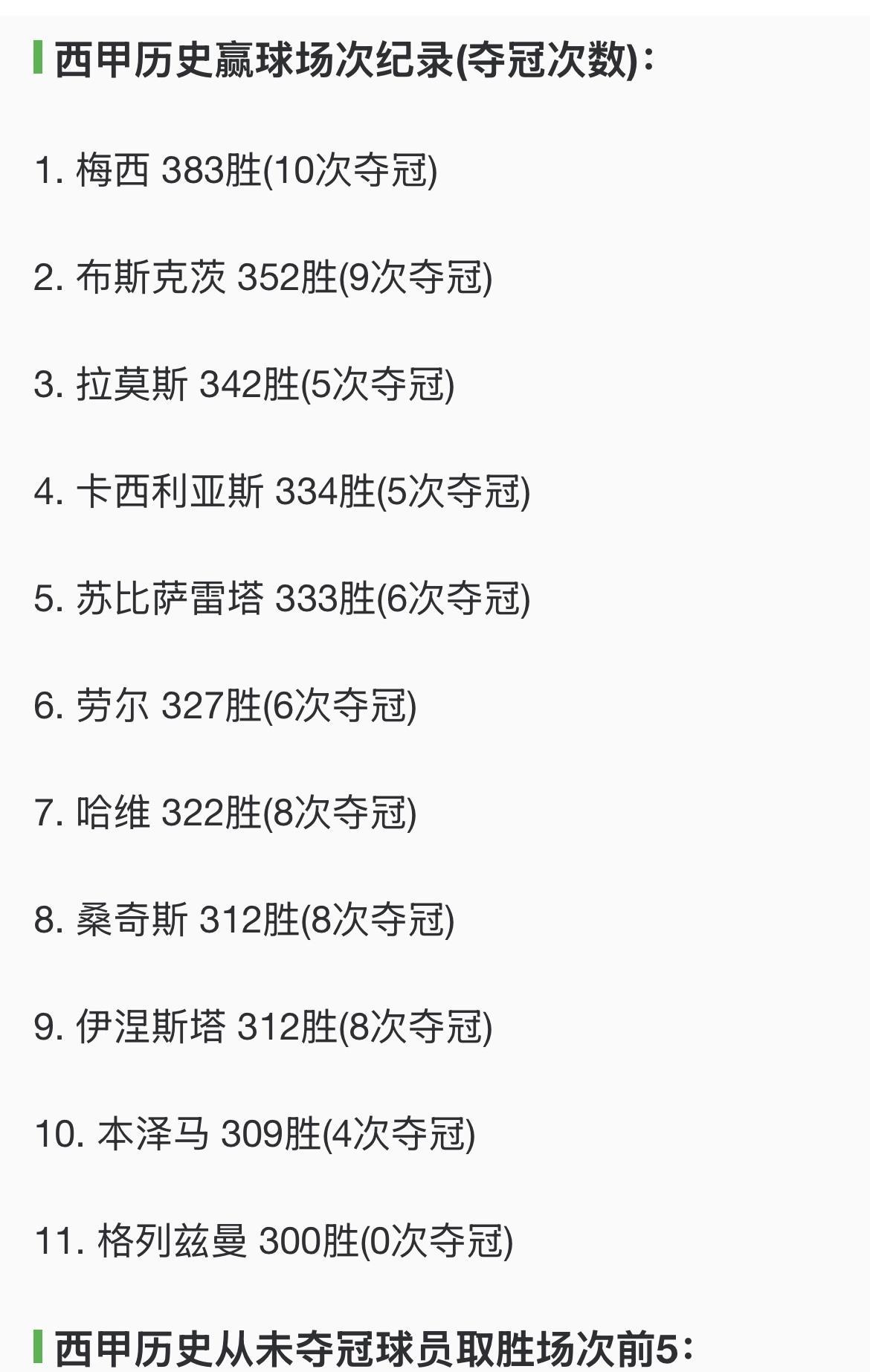 上赛季格列兹曼成为西甲外籍球员中出场数最多的人,最近又成为西甲赢球场次300+球员的一位。 但他一个西甲冠军都没有。 2014年,马竞在巴萨和皇马的围堵中夺冠,他立即加盟,之后5年冠军是皇萨的;2019年,格列兹曼离开马竞去了巴萨,之后2年冠军是皇马和马竞。2021年,眼看马竞又夺冠了,格列兹曼厚着脸皮回来,之后4年冠军是皇萨的。 其他赢球场次达到300的球员,至少有4个联赛冠军,更别说10个冠军的梅西了。说起来真的很尴尬,格列兹曼就是个联赛冠军绝缘体。