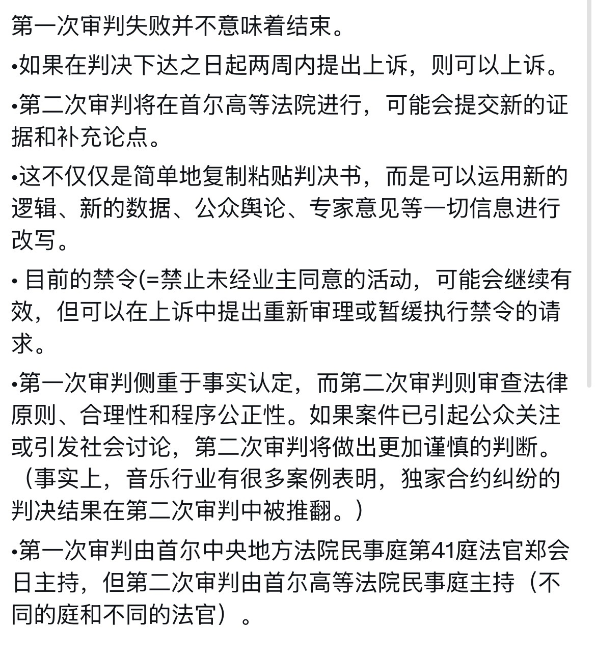 •第二次审判将在首尔高等法院进行,可能会提交新的证据和补充论点。