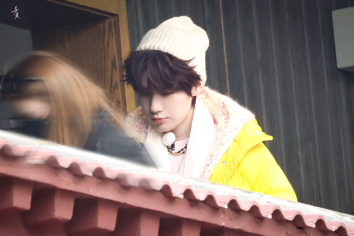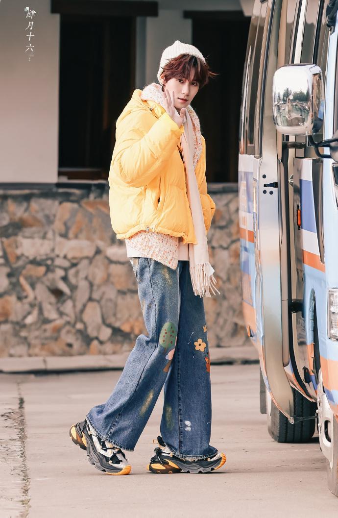 张真源白色毛线帽黄色羽绒服look张真源好可口的奶黄包