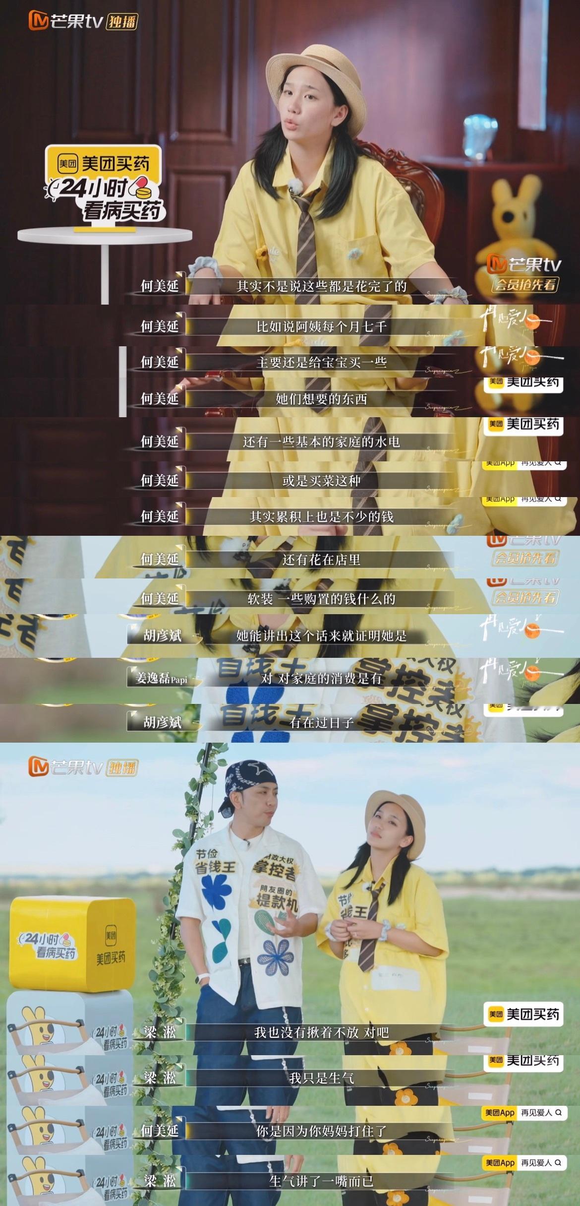 因为赚的比梁淞少,所以梁淞会转账给何美延支付家庭开支。但吵架的时候梁淞会让何美延把手机拿出来看看钱花在哪里,让何美延很受伤。
