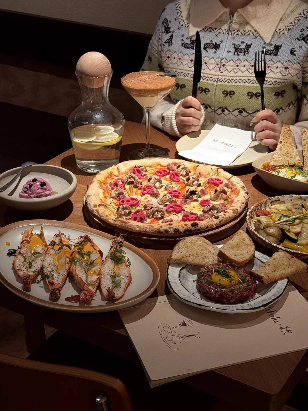上海我心中可以排前三的漂亮饭餐厅!!静安区!人均才100+简直是穷鬼的福音啊啊!! 店里真的好漂亮!木质的桌椅好有格调,和每一任男朋友约会都是来这里!简直就是我的梦中情店😭 超大的窖炉现烤披萨🍕师傅板前做餐很有氛围~北非蛋、直火炭烤时蔬、海鲜空心直面,随手点的都超超超好吃!