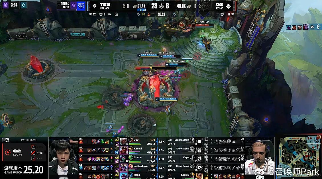 LPL影子战队真是立大功,陪练后的滔搏哥TES好陌生,除了中路放先锋越芮尔二塔有点粗糙,其他几乎没有给G2机会,对线优势后直接滚雪球平推G2了。
