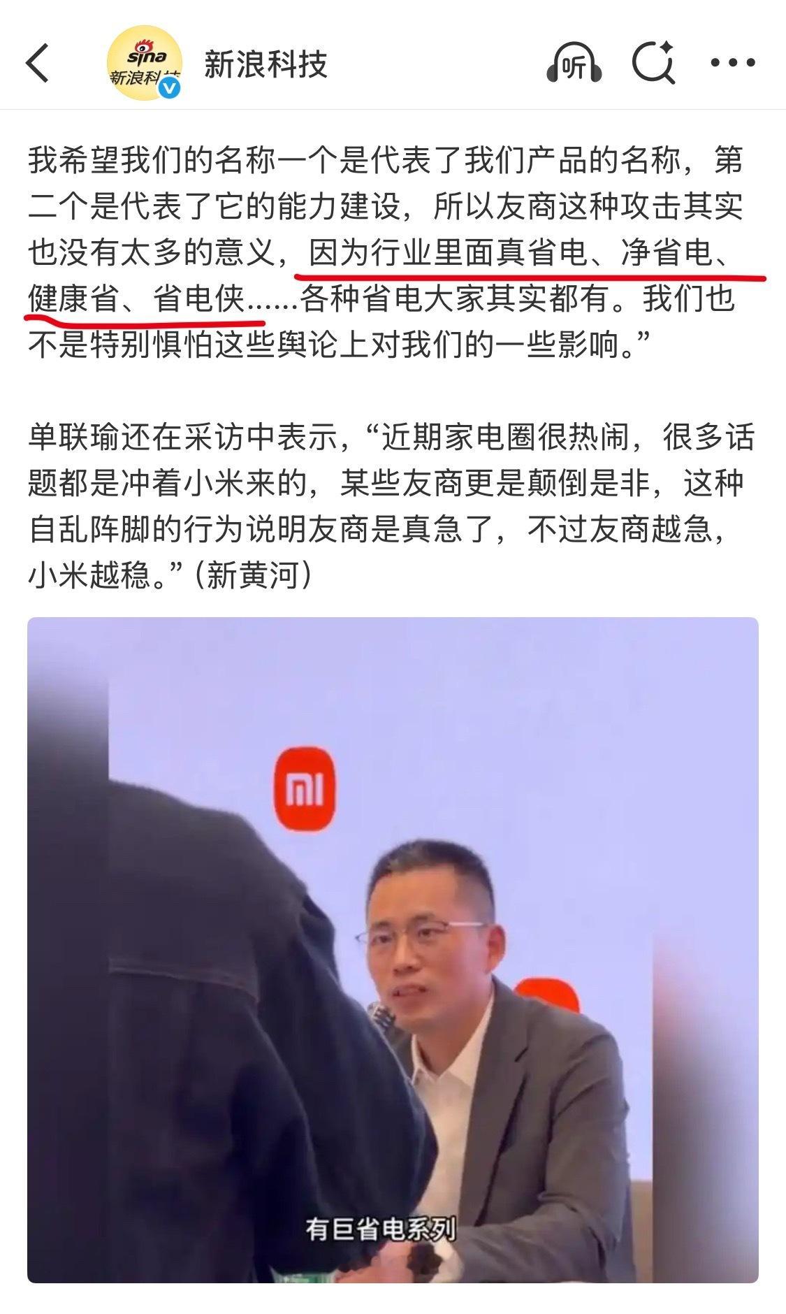 小米高管回应巨省电只是空调名如果行业都这么玩,为什么网友要盯着小米不放?