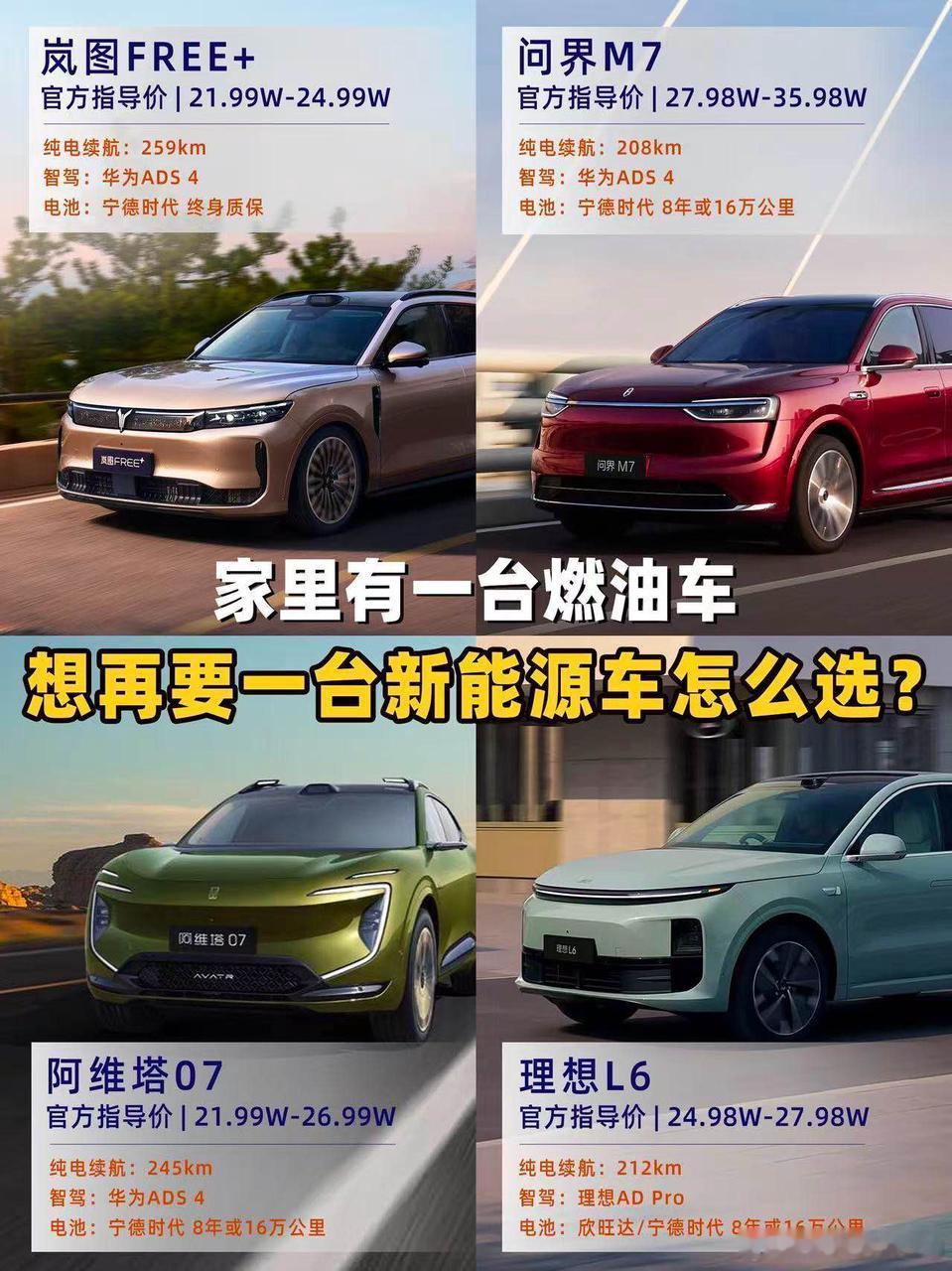 岚图FREE+问界M7理想L6新能源汽车选车建议