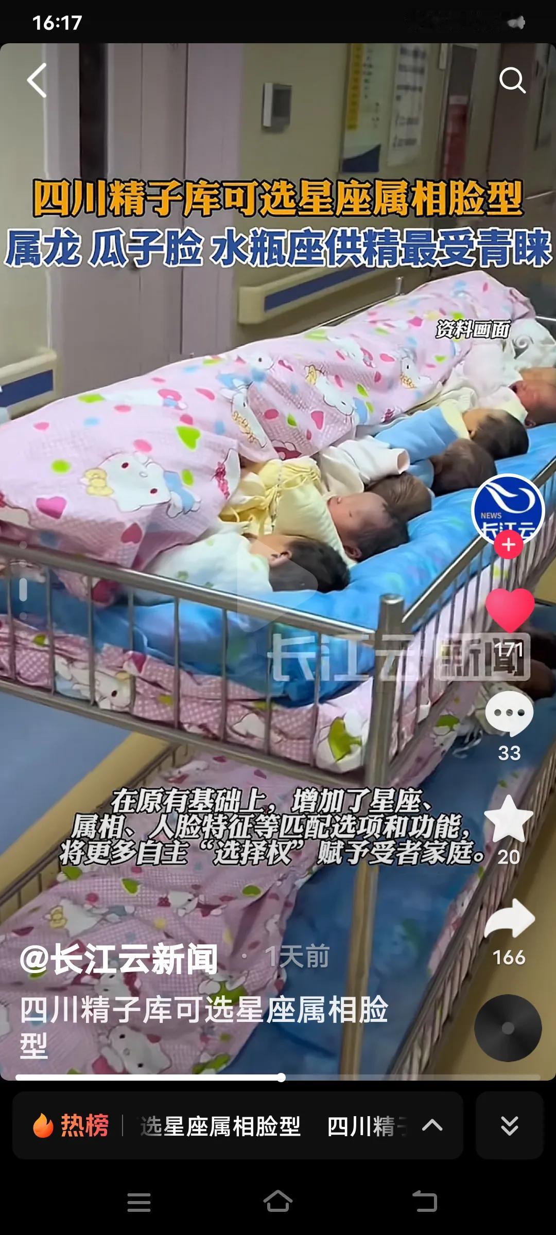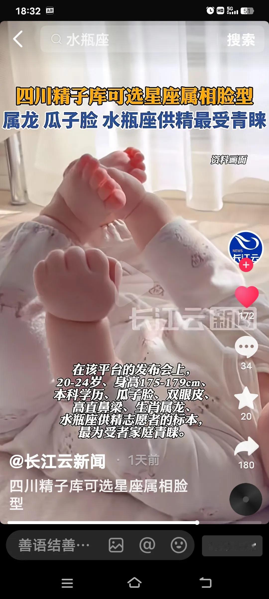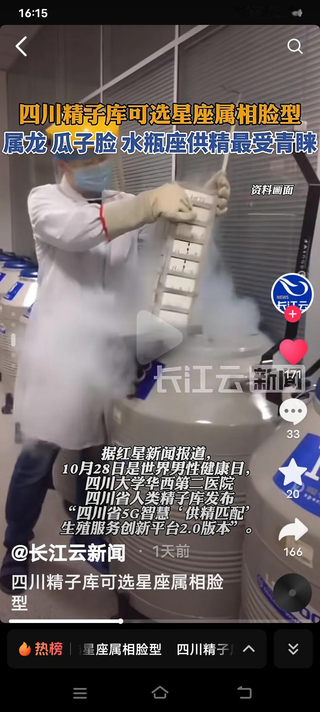 10月28日世界男性健康日,四川精子库推出“四川省5G智慧‘供精匹配’生殖服务创新平台2.0版本”,新增星座、属相、人脸特征等匹配选项,让受者家庭拥有了自主“选择权”。 发布会上提到,我国不孕不育率逐年攀升,目前已达15%左右,每8对夫妇中就有1对可能面临这一问题,其中因男性因素导致的约占50%。生肖属龙、水瓶座的供精志愿者的标本,最受受者家庭青睐。 这无疑是一种科学的方式。不过,评论区有人调侃,以后有了孩子就能随心所欲了。当然,并非所有受者家庭都会采用这种方式,这是为有需求的家庭提供的选择。毕竟,若夫妻双方生育条件良好,又怎会需要借助此方法呢? 无精受孕 精子库 精子畸形症 低精子活力 人才匹配小程序