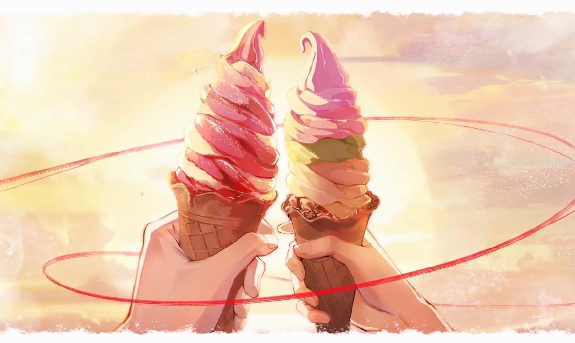 小情侣就要一起吃冰淇淋嘻嘻嘻,动漫做的太好了我怎么才发现啊呜呜呜!谷围动画好甜我是说冰淇淋谷围南亭动画次元整活好有意思