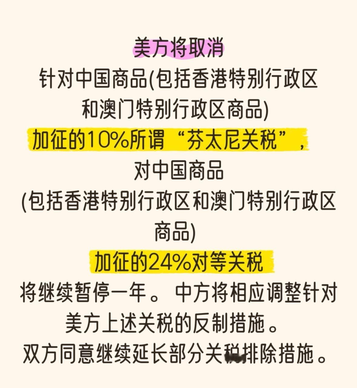 美方加征24%关税继续暂停一年