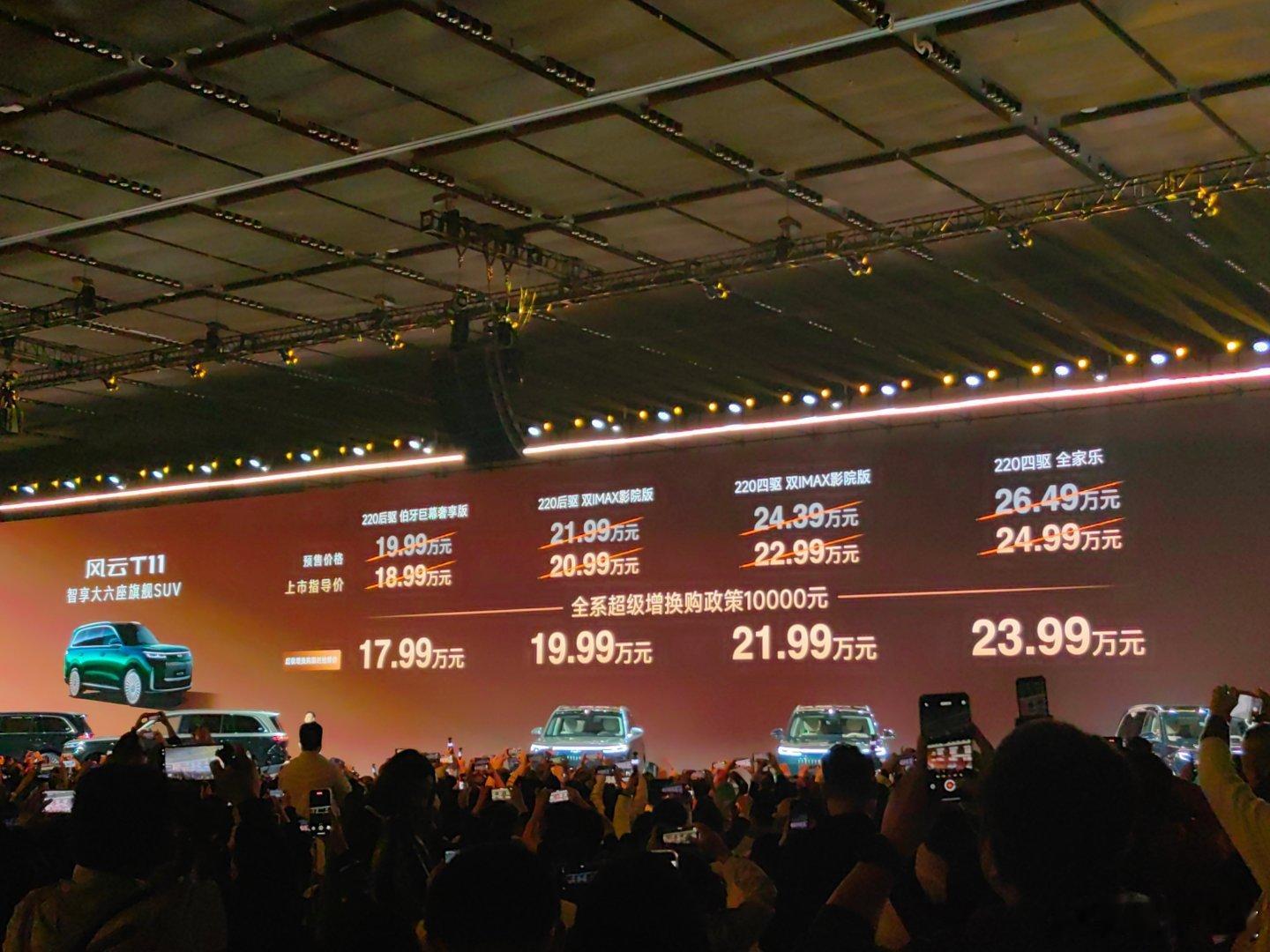 今晚来看风云T11上市,六座旗舰SUV直接瞄准多孩家庭市场现在大六座确实是个香饽