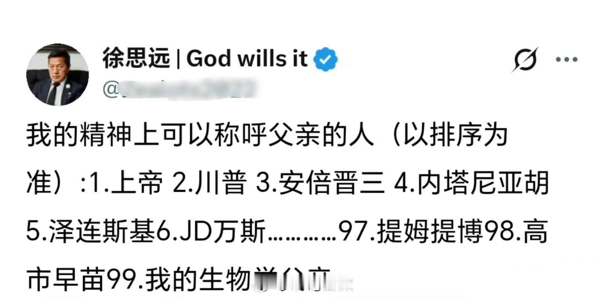 ⭐自称有99个爹,但是亲爹排在倒数第一位。