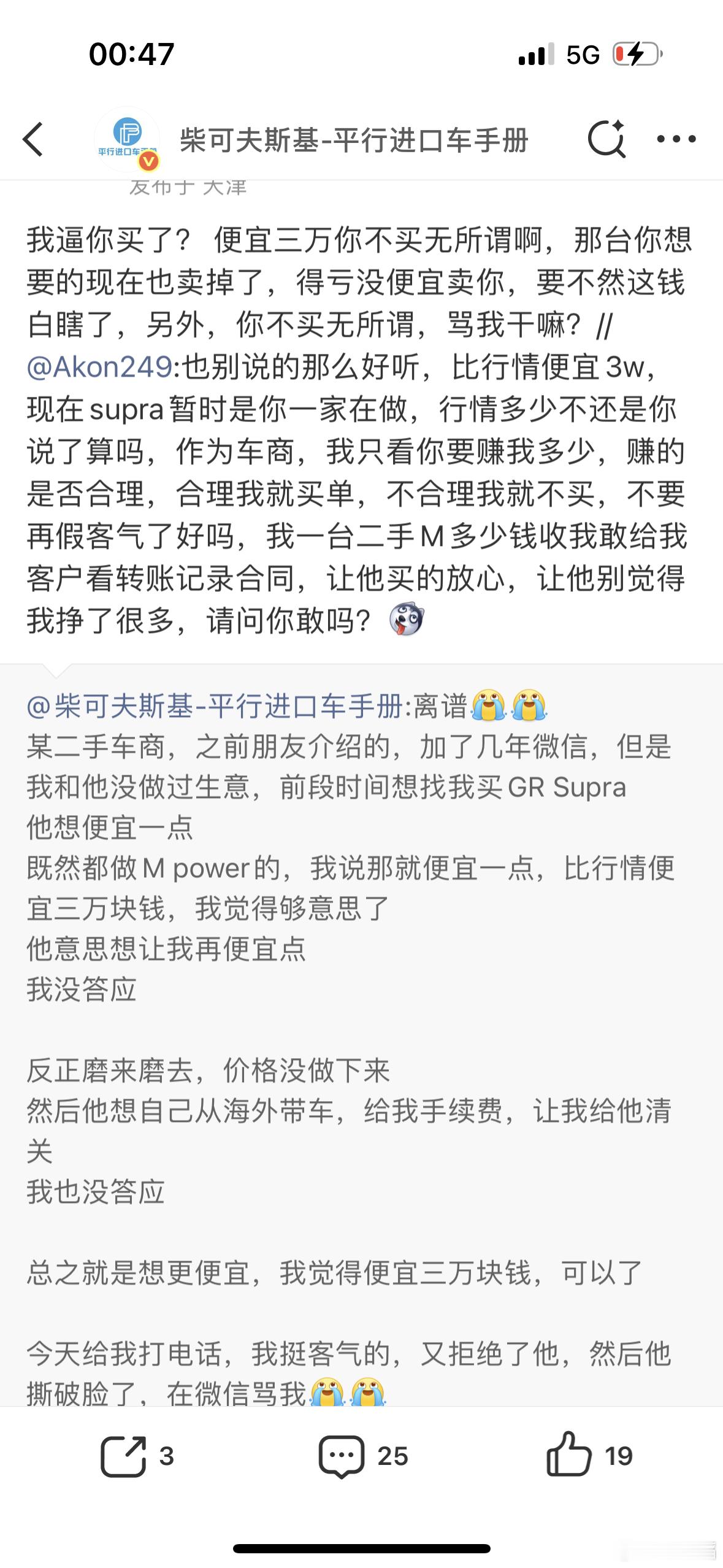 这话是怎么好意思说出来 大概意思我不管车价多少钱我只盯着你赚我多少…..[允悲][允悲][允悲]