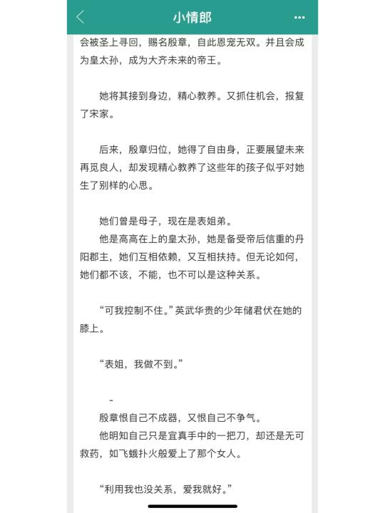 故事设定比较带劲,嫡母和庶子的搭配组合,姐弟恋,但是两人的拉扯感还是很有张力的,女主的人设也属于黑莲花。