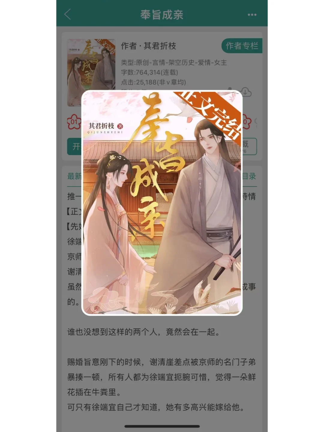 今日推荐:《奉旨成亲》,作者:其君折枝