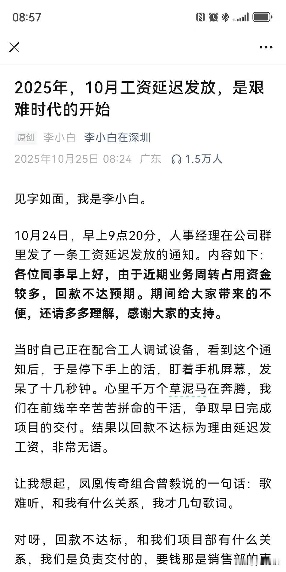 看到网友发了自媒体,进入10月份,有些企业发不出工资了。虽然现在看到企业关厂、企业倒闭的不多,但是出现了新的情况,公司半死不活的挂着,工人的工资也不按时按量足额发放,大家都在相互的磨着,这个才是最痛苦的,要死就痛快一点,要活就轰轰烈烈一点,这样半死不活的活着真是太难了。15个五年计划正在启动,要实现15个五年计划,这些企业应当是必备之一,这也是人民生活的经济命脉。