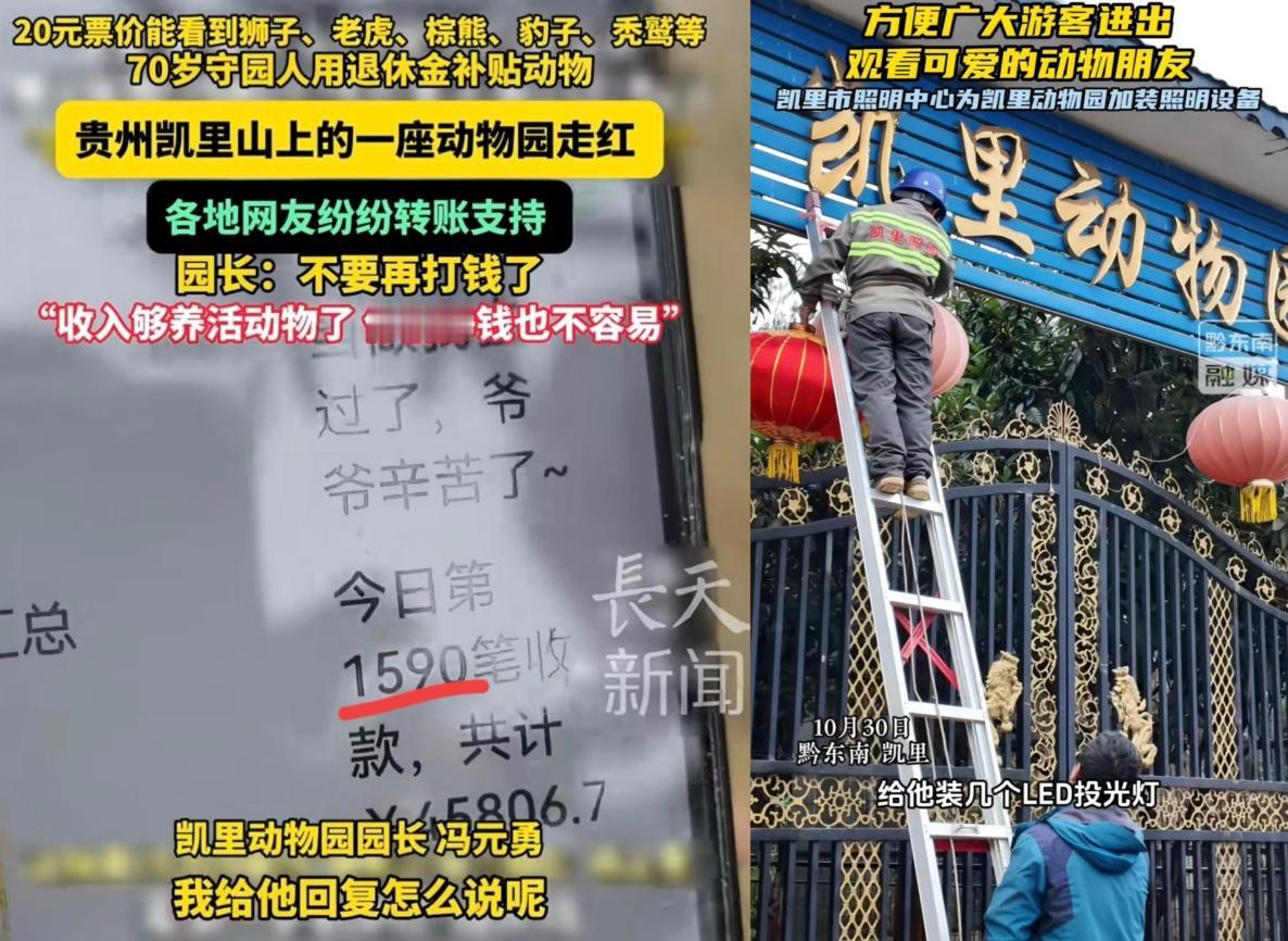 他是凯里动物园的园长,因为没有生意,长期自掏腰包喂养动物园的动物,有网友直接把他的收款码发到网上,结果短短时间就收到一千多笔收款,每笔都是20元,因为动物园的门票长期都是20元,因为只有几只动物,所以没人来看,也很偏僻,但是他舍不得这些动物,所以一直自己养着它们。 有网友把他收款码发网上,没想到一下子收到一千多笔20元转账。为啥是20元呢?原来动物园门票一直就20元。就这么着,园长的事儿火了,动物园也跟着火起来,但他依旧不涨价。 如今,当地多部门都来帮忙,装灯打理啥的。园长能火,是他在入不敷出时还坚守,不涨价,这份对动物的情义感动了大家。我觉着,在追求利益的当下,这种坚守太难得了!
